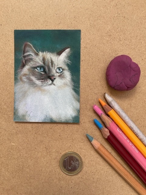 Original Pastel Siberian Cat Drawing in ACEO Art Format