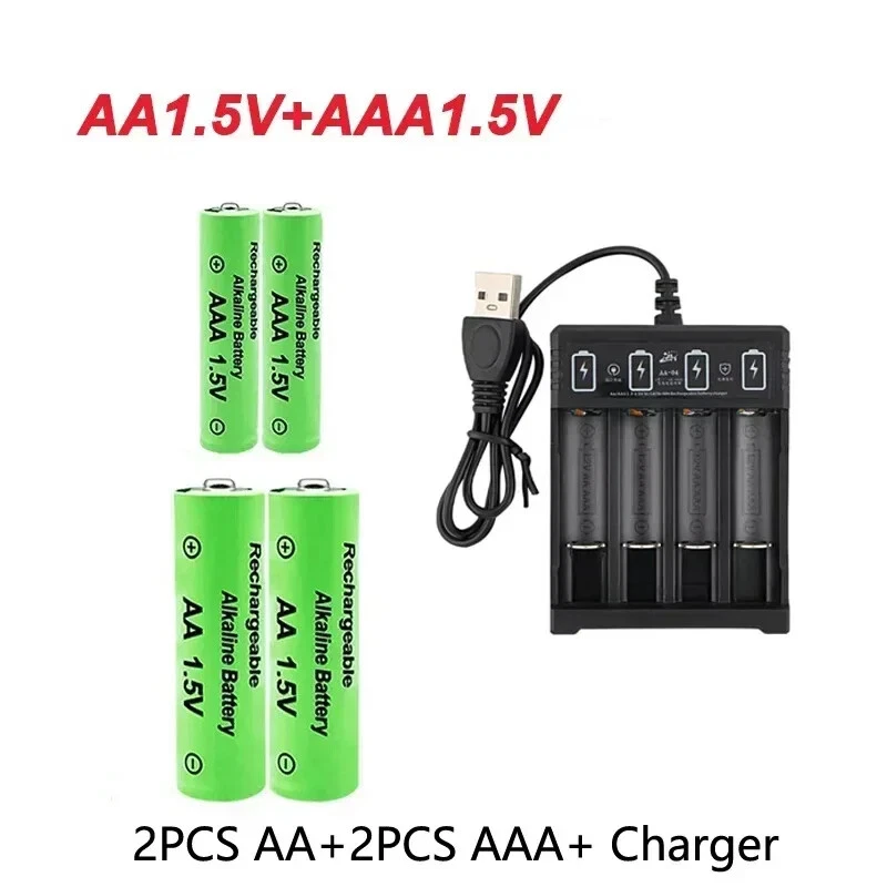 1.5V AA 9800mAh+1.5V AAA 8800mAh alkaline rechargeable battery With charger Used for LED remote control toys, computer clocks, radios, video games, smoke detectors, cordless phones Battery characteristics: AA: Capacity: 9800 mAh AAA: Capacity: 8800 mAh 1 Brand: Ddadache 2. High voltage: 1.5V 3. Charging method: AAA, alkaline rechargeable battery 4. Environmentally friendly materials 5. Up to 1000 charging cycles 6. Excellent high emission/drainage performance 7. Accurately replace standard AAA batteries 8. Excellent low-temperature performance 9. It can be used for a longer time in high discharge equipment. 10. Do not invert the positive and negative poles of the battery.