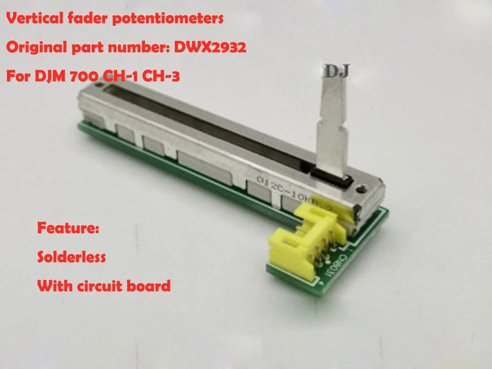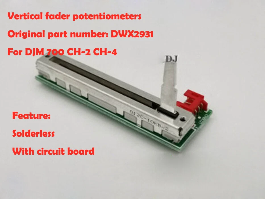 Mixer volume with board solderless fader vertical fader potentiometer DWX2932 for CH1, CH-3 DWX2931 for CH-2, CH-4 Direct replacement without welding . There is resistance is the kind of feel! No resistance is the kind of smooth! Feature: *100% Brand New ** High Quality Package content:1pc Fader Original Replacement Channel Fader For Pioneer DJM 700 CH1 CH2 CH3 CH4 100% New Mixer volume with board solderless fader vertical fader potentiometer DWX2932 for CH1, CH-3 DWX2931 for CH-2, CH-4 Direct replacement without welding . There is resistance is the kind of feel! No resistance is the kind of smooth! The item for sale is the kind of no resisitance. Feature: *With resistance **100% Brand New ***High Quality Package content:1pc Fader Payment Delivery details Tax&Duties Contact us About us Payment We accept Paypal/G Pay/Visa/Master/American Express/Discover . Payments are expected with 2 days once the auction ended. Delivery details We guarantee orders will be shipped within 1-5 working days after payment RECEIVED/eCheck cleared(usually the work day). Delivery time is approximately. 12-30 business days to US and UK (with the standard intl' way) 15-35 business days to Eurpope. (with the standard intl' way) 18-45 business days to other countries.(with the Economy intl' way) Important: all our items will be shipped to buyer's eBay address,please confirm your address before you bid your item.If there is any changes, please contact us. Tax&Duties Taxes and charges are Not included in the item price or shipping charges. These charges are the buyer's responsibility. Contact us 1.If you have any questions,please contact us through eBay Message before you bidding. 2.As a responsible seller,we will try our best to solve every problem with you.please communicate with us before you are going to leave us a NEUTRAL OR NEGATIVE Feedback.. 3.Please inquire prior to bid so that we are both on the same page with regard to any question! About us 1.We will leave POSITIVE FEEDBACK after receiving the payment. Please contact us if you are not satisfied with the item after receiving it. 2.All email will be answered within One working day. If you do not receive our reply, please kindly re-sent your email and we will reply to you as soon as possible. 3.Our working time: 9:00 AM - 18:00 PM (BeiJing Time GMT+8 ), Monday - Saturday. (weekend and holidays excluded).