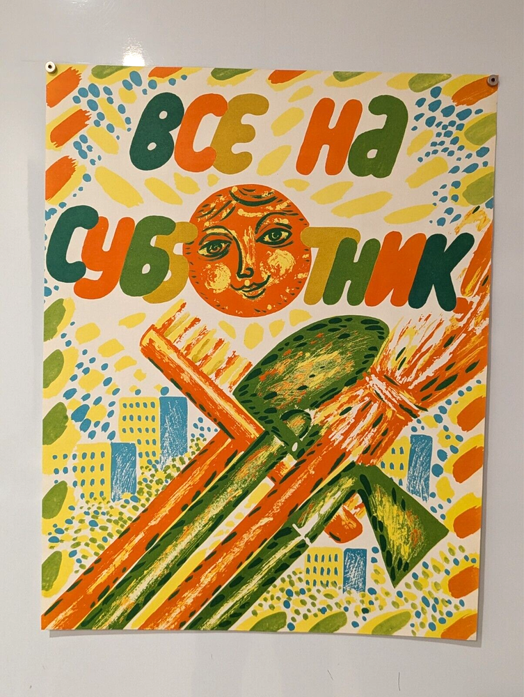 Welcome to Antique Poster Shop The poster is one of the most lively and, at the same time, the most complex areas in graphic design, in art. The Soviet poster is a truly unique phenomenon, and in different years the authors of famous posters were outstanding Soviet artists, leading people of their time. The best artists of their time worked on propaganda posters, famous poets wrote slogans - thus, unique graphic schools were formed. Nowhere in the world did they teach the poster purposefully and systematically, as it was in the USSR. Rare Soviet posters today have to be searched for in different countries of the world. It's a paradox, but what was created in only a few copies and is known only to collectors is sometimes easier to find than what was produced in thousands of copies. Of the millions of campaign posters that have adorned the streets, classrooms, classrooms and hospital corridors for many decades, only a few have survived. Posters of the Soviet era are not only original works of graphic art, antiques and antique graphics, original retro gifts and interior items, but also truly historical documents. ON IT WRITE - Everyone to Subbotnik SIZE – 60/44 CENTIMETERS OR 26/ 19 INCHES . Attention important information ////// A ttention important information //////////////////////////////////////////////////////////////////////////////////////////////////////////////////////////////////////////// Visit my store : https://www.ebay.com/str/originalfilm312/Poster/_i.html?store_cat=43231993011 In my store, all posters are very conveniently arranged by category. I combining shipping ( After selecting all posters. Write to me to send you an invoice including combined shipping . ) Will be shipped rolled in professional packaging and tracked delivery Some posters are undergoing professional restoration. But not all. If this is important for you, ask a question, this poster has been restored or not. Thank you //////////////////////////////////////////////////////////////////////////////////////////////////////////////////////////////////////////// Shipping Policy Item will be shipped immediately on the same or next business day of receiving the payment Shipping WorldWide through UKRAINE Posts Tracking number will be provided I am not responsible for any wrong or undeliverable address. Delivery to European countries usually takes about 10-17 days. Delivery to USA, CANADA , North America and other countries takes about 18-30 days. The delivery time depends on the destination, holidays, customs clearance factor and other factors.