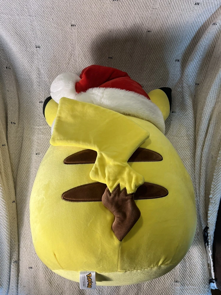 This Original Squishmallows Pokemon Santa Hat Pikachu 20" Plush is the perfect addition to your holiday decor. With its bright yellow color and cute mouse shape, it will bring joy to people of all ages. The plush is made with high-quality materials and is washable for easy care. It features the beloved Pokemon character Pikachu wearing a festive Santa hat, making it a must-have for any Pokemon fan. This medium-sized plush is perfect for snuggling and is recommended for all ages, from 1-2 years to 17 years and up. It is part of the Squishmallows brand and is a great gift for anyone who loves stuffed animals. Celebrate the holiday season with this unique and adorable plush that will surely bring smiles to everyone's faces. Sold as is and as pictured.