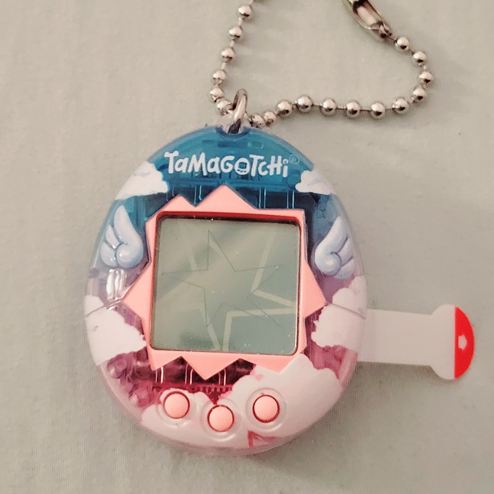 A tamagotchi angel with the dreamy shell. Never used but was opened. Works perfectly. Feel free to send me a message if you have a question! I only send out on Saturdays, thank you!