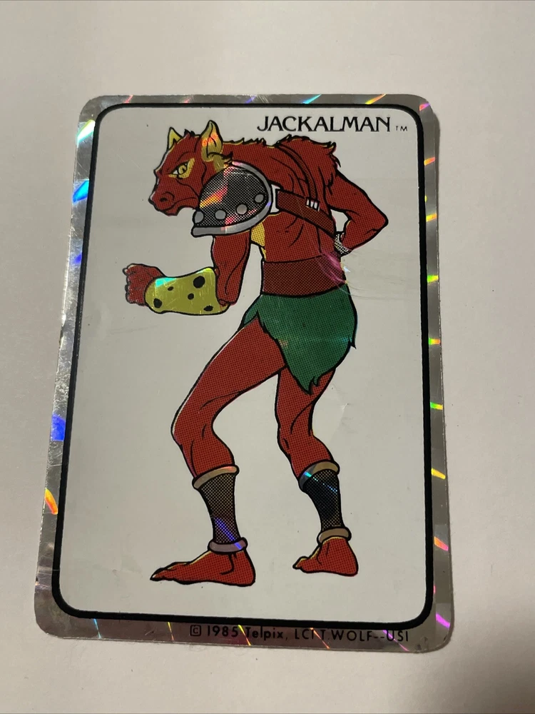 This is an original vintage 1985 Thundercats Jackalman Prism Vending Machine Sticker. The sticker is a unique piece of collectible that would be a great addition to any vintage or retro collection. The design features Jackalman, a character from the Thundercats animated series, in a prismatic format that adds a unique touch to the sticker. The sticker is perfect for collectors who appreciate the art of animation and want to add a piece of their favorite show to their collection. This item is a must-have for any Thundercats fan and would make a great gift for anyone who loves the show.