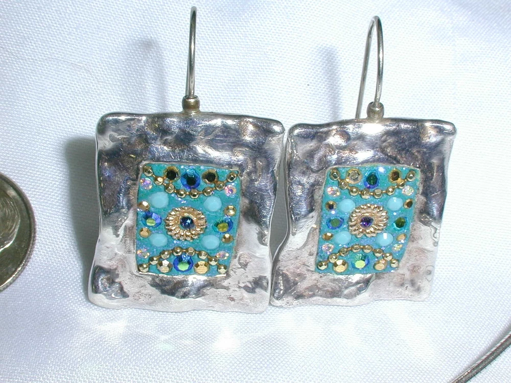 This fabulous jewelry set from OS is a must-have for any fashion-conscious individual. Crafted from high-quality 925 sterling silver, this necklace and earring set features stunning multicolor glass opals as the main stone, with sparkling CZ stones as the secondary. The set is perfect for any occasion, whether it's a night out on the town or a special event. The silver and CZ stones have a beautiful sparkle that will catch everyone's eye. This set is a great addition to any jewelry collection and is sure to impress. DESCRIPTION: Hallmarked: OS 925 Weight: 19.53 Grams Necklace: The pendant measures 1" wide by 1 1/2" tall The fine chain is 16" long Earrings: Measure 3/4" wide by 1 1/2" long with the ear wires They look Amazing on~ worn together or apart. The earrings have French wires for pireced ears. Free US domestic shipping , international shipping is available at actual first class rates. Please see my other listings for more great jewelry.