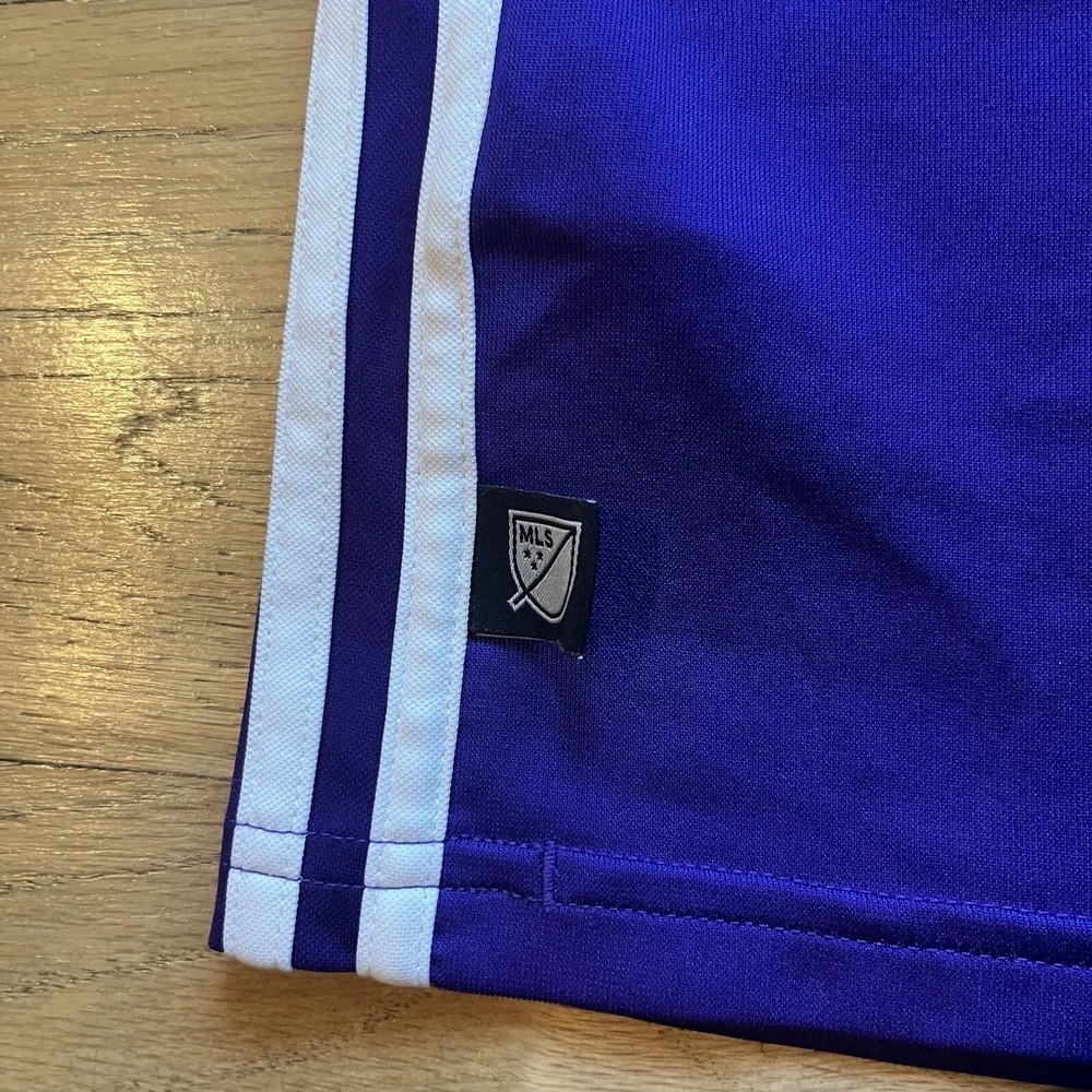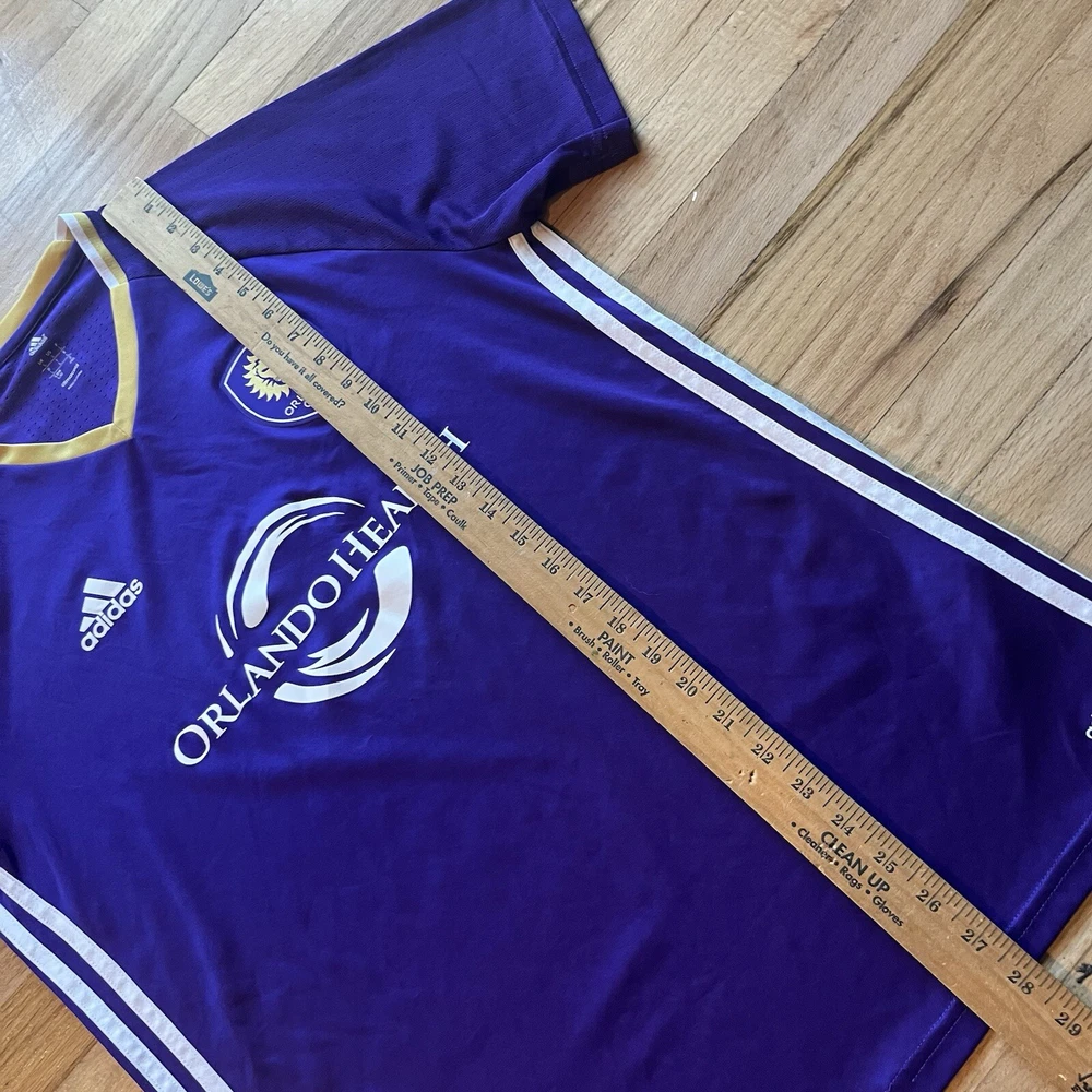 Great condition, no flaws. Measurements in photos. Message me any questions! Show your support for Orlando City SC with this Adidas soccer jersey in a striking purple color. The jersey is designed for men in a size L and features the team's logo on the front. It is made in Thailand and is perfect for casual wear or playing soccer. The jersey is not officially licensed and does not have a player's name or number. This Adizero jersey is perfect for soccer enthusiasts who want to represent their team at the next game or casual outing. The jersey is made of high-quality materials and has a regular fit for maximum comfort. Get yours today and show your support for Orlando City SC!