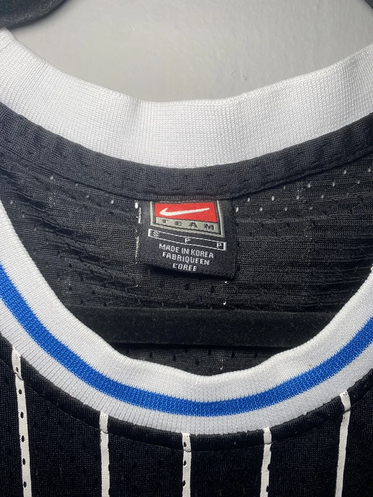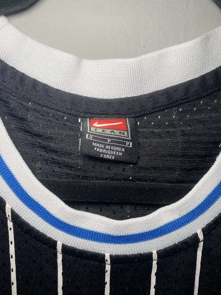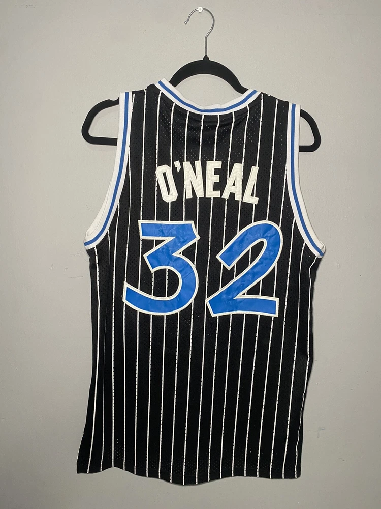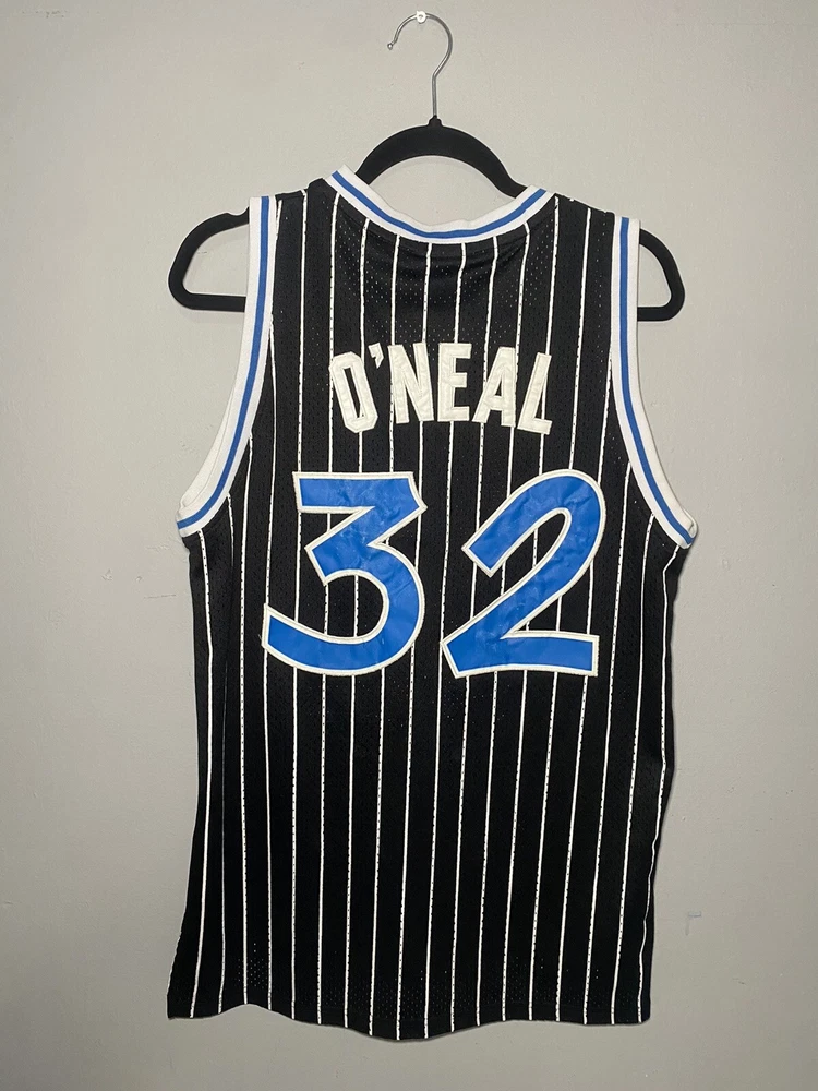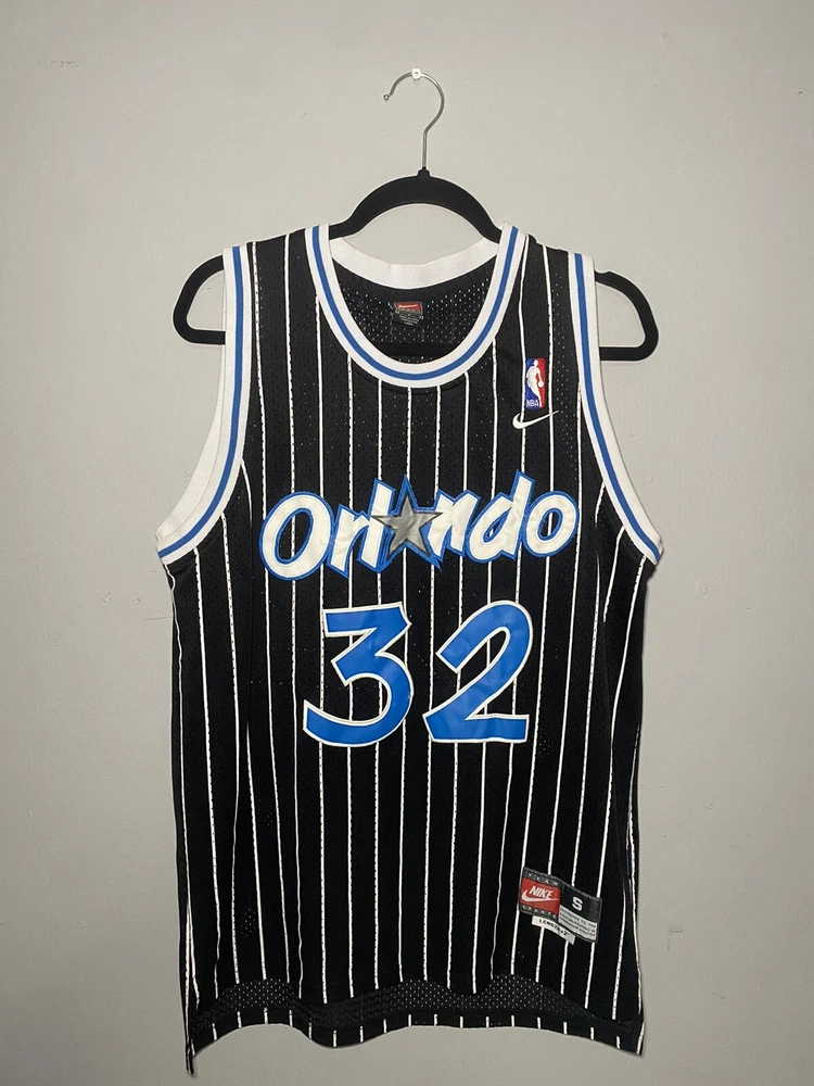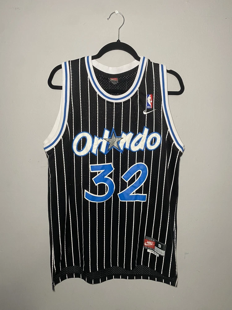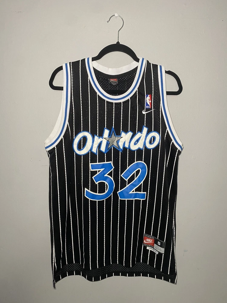 Step back into the era of one of the most dominant centers in the NBA with the Orlando Magic Nike Shaquille O'Neal Swingman Jersey. This authentic fan jersey, in a sleek black colorway, is a staple for any Magic supporter or basketball collector. Featuring the iconic Orlando Magic team graphics and Shaquille O'Neal's name, this jersey celebrates the legacy of a basketball great.Crafted with quality materials, this jersey is designed to mirror the same style and comfort as the pros wear on the court. With its size small fit, it's perfect for showcasing your team spirit at the game, or adding to your collection of sports memorabilia. The Nike brand ensures that you're getting an officially licensed product that stands the test of time.