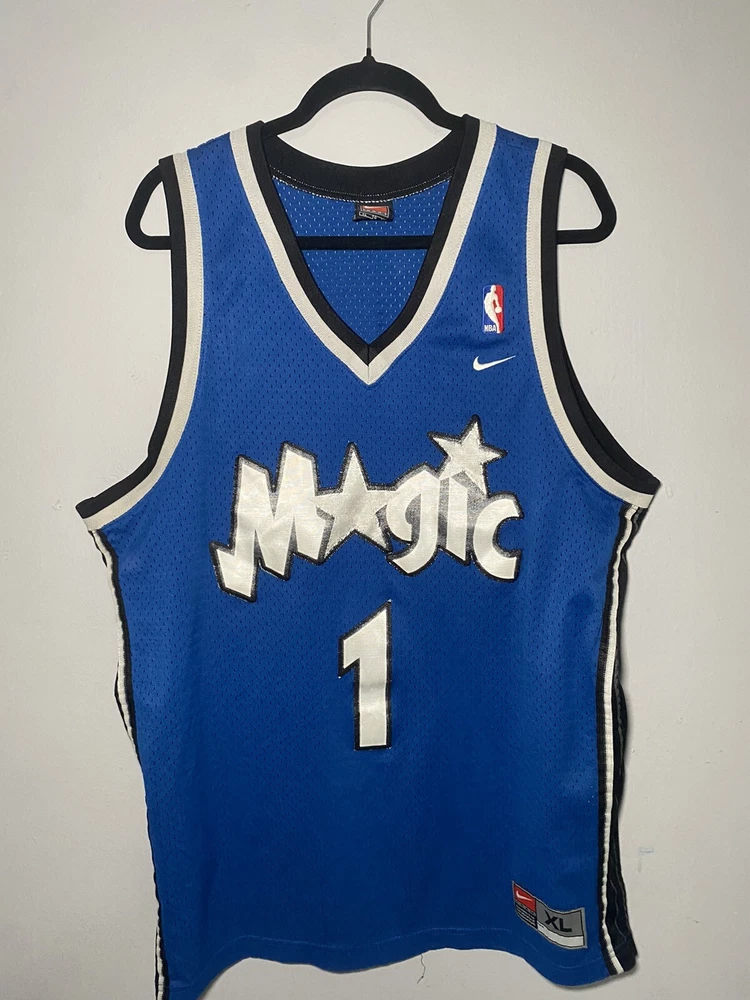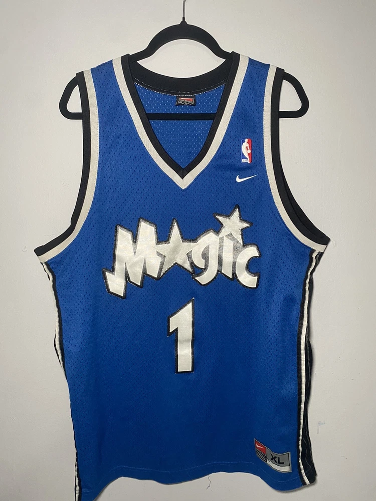 Embrace your passion for basketball with this Orlando Magic Tracy McGrady Nike Jersey. A must-have for fans, this jersey features the iconic blue color and the number 1, representing McGrady's impressive career in the NBA. The size XL ensures a comfortable fit for most, allowing you to enjoy the game day experience or your own pick-up games with style.Officially licensed by the NBA, this jersey stands for quality and authenticity. Designed for the regular season enthusiast, it's a timeless piece of sports memorabilia that celebrates the legacy of one of basketball's greats. Whether you're cheering from the stands or hitting the court, this jersey is perfect for any dedicated fan of the sport or collector of NBA history.