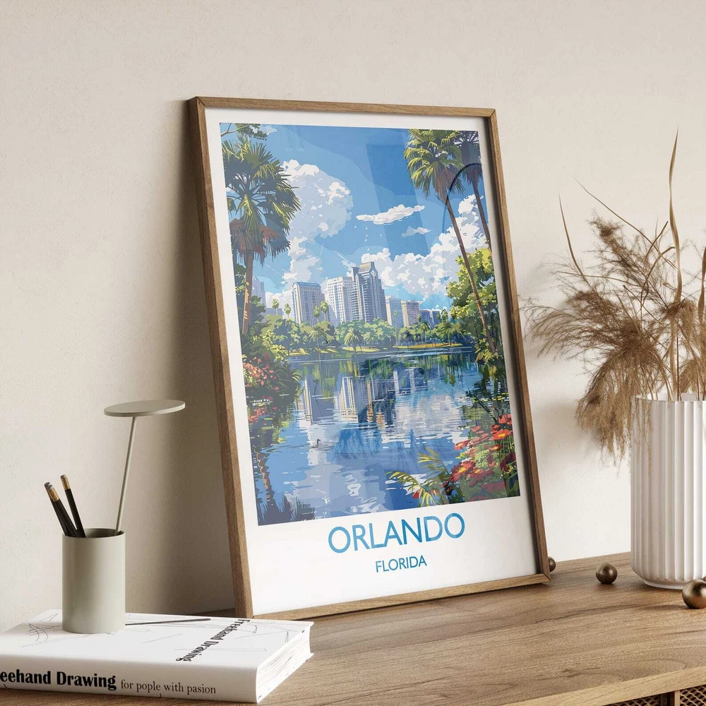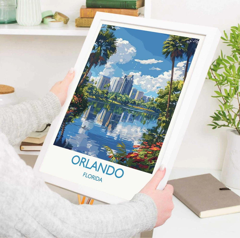 Orlando Travel Print Travel Poster Of Orlando Orlando Art Lovers Gift Florida Art Gift Usa Wall Art Print Material: Premium luster photo paper Print type: Inkjet printing One side printed + The finish provides the highest possible resolution and color saturation + Lasts up to 200 years in color and 400 years in black-and-white + Printed on high-quality resin-coated photo base paper medium + Posters can be hung with double-sided tape, tacks, or framed + Hand washing with a gentle cry cloth is recommended for extended durability I will hand select the best choice of paper for your chosen design to ensure top quality results for a beautiful, bright and luxurious print. All prints are sealed in cellophane slips for protection during transportation, and are shipped in a protective cardboard envelope.