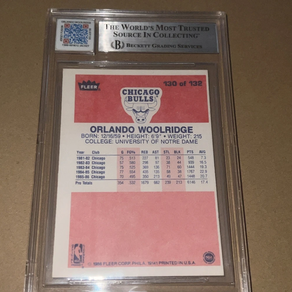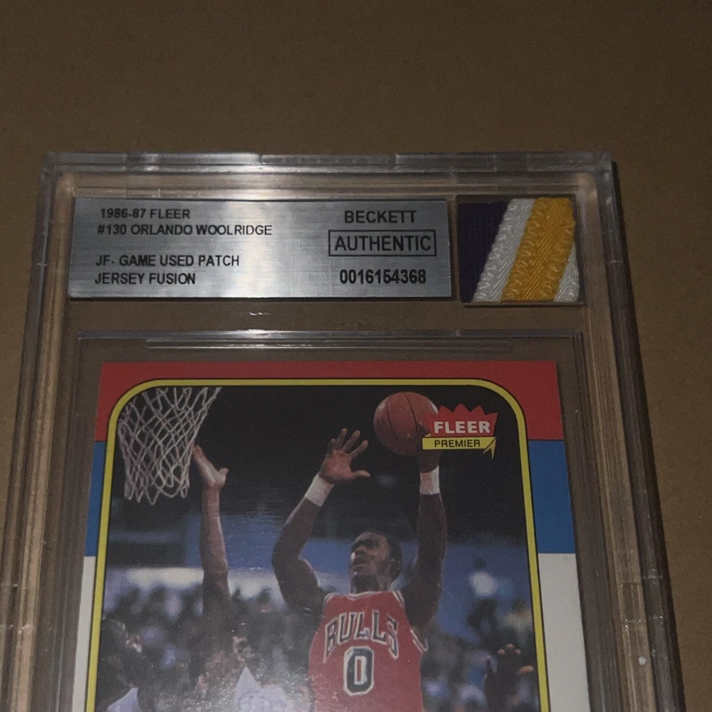 This rare 1986 Fleer sports trading card features Orlando Woolridge of the Chicago Bulls in a patch variation. The card is made of high-quality card stock material and is an original licensed reprint. It belongs to the base set and also includes memorabilia features. The card is graded by Beckett Grading Services (BGS) and has received an authentic rating. It is a must-have for any vintage basketball trading card collector. The card number is 130 and it is from the National Basketball Association (NBA) league. The card is in English language and manufactured by Fleer in the United States.