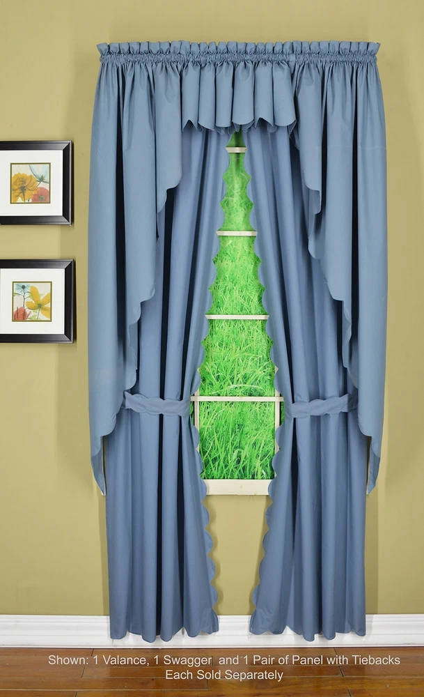 , Orleans Scallop Curtain, Blue 54" Panel Pair and Tieback,4-Piece-Set, 60" W...