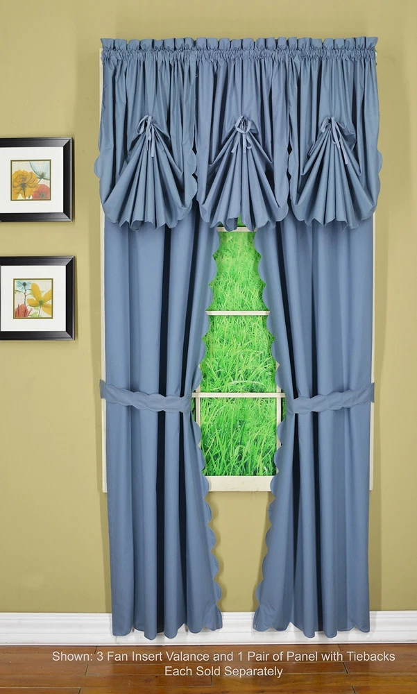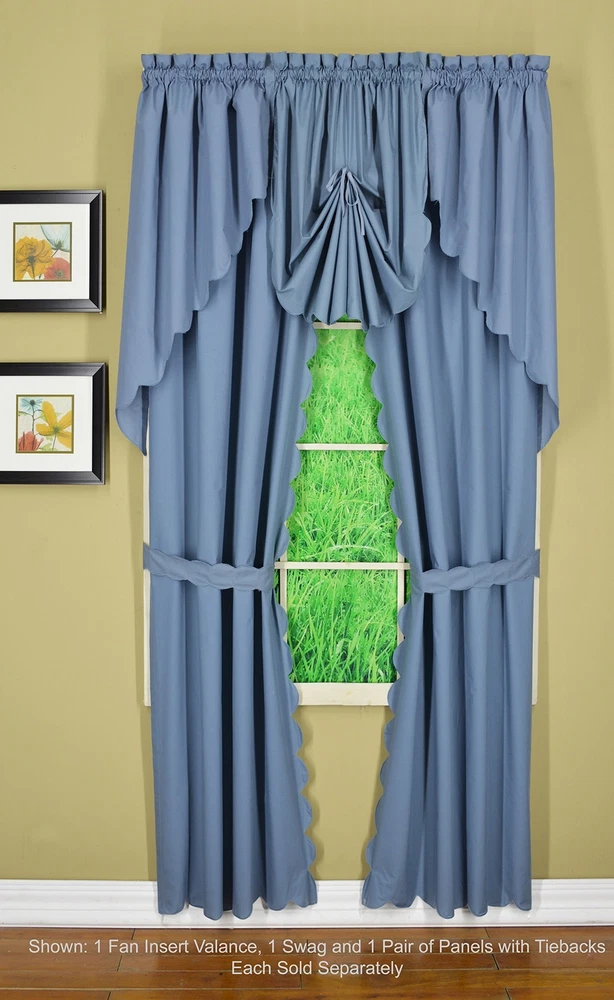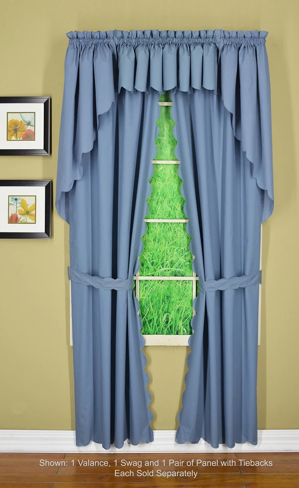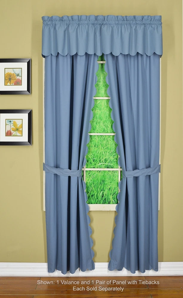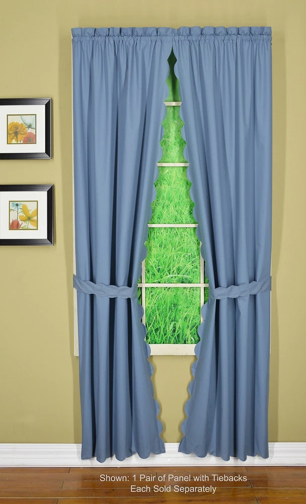 , Orleans Scallop Curtain, Blue 63" Panel Pair and Tieback,4-Piece-Set, 60" W...