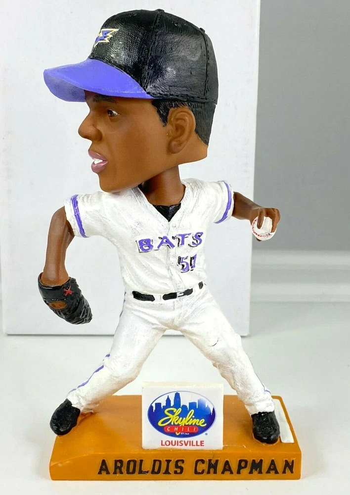 Oroldis Chapman Bobblehead Louisville Bats Reds Baseball 1 Of 2500 7-25-13 New OROLDIS CHAPMAN BOBBLEHEAD NIGHT JULY, 25TH 2013, LOUISVILLE SLUGGER FIELD, CINCINNATI REDS MINOR LEAGUE AAA TEAM, THE LOUISVILLE BATS PROMO LIMITED TO 2500 IN THE WORLD, RARE THIS IS NEW IN BOX, NEVER DISPLAYED. WAS ONLY OPENED TO INSURE GREAT CONDITION VERY COOL DESIGN, NO SIGNS OF ANY ISSUES LONG TIME GREAT PITCHER FOR THE CINCINNATI REDS AND LOUISVILLE BATS THIS BOBBLEHEAD CELEBRATES THE FASTEST PITCH EVER AT 105 MPS OVERALL VERY GOOD BOX WOULD MAKE A GREAT GIFT FOR ANY LOUISVILLE BATS FAN. ADD TO YOUR COLLECTION TODAY! ✨✨✨✨✨✨✨✨✨✨✨ The VinKris Collection is committed to delivering a great experience! We will ship to you with the greatest of care All items are shipped in sturdy boxes We use packing materials appropriate for the product to help ensure safe delivery Shipments to the United States and Protectorates are handled via USPS International shipments will ship via Ebay's International Shipping Program All packages are shipped within 1 business day of payment We ship daily Monday through Saturday Worry free purchases, we stand behind everything we sell with free 30 day returns We have thousands of happy customers and our goal is 100% customer satisfaction We are happy to answer any questions