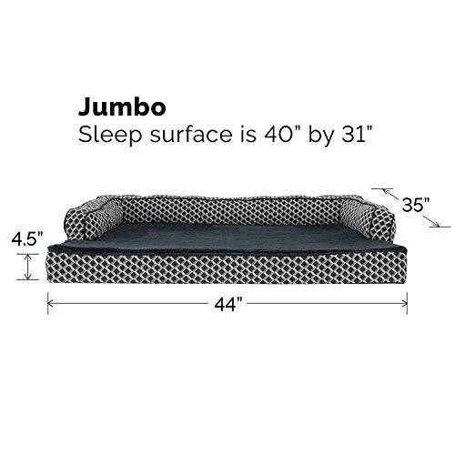 30 Days Return Policy Fast Delivery Trusted seller Orthopedic Dog Bed for Large Dogs w/ Removable Bolsters & Washable Cover, For Dogs Up to 95 lbs - Plush & Woven Decor Comfy Couch Sofa - Diamond Gray, Jumbo/XL Product Description COMFORT AS PRIORITY: The sofa-style design creates a cozy and inviting space that promotes comfort and security; designed with supportive bolsters for dogs to rest their heads on for optimum lounging comfort SLEEP SURFACE: Featuring a cuddly soft plush faux fur main sleep surface and bolsters wrapped in durable woven upholstery fabric; both are gentle on noses and paws for enhanced snuggling and burrowing comfort EASY ON JOINTS: The egg crate orthopedic foam base helps cushion pressure points and improve air circulation, while fluff-filled bolsters support the neck, back, hips, and joints; helps ease discomfort and promote restful sleep PRODUCT DETAILS: Orthopedic Dog Bed, Diamond Gray; Jumbo - 40" x 32" x 8.5" (4" Base Foam Height; Sleep Surface: Approx. 34" x 29") AVAILABLE IN: Diamond Brown, Diamond Blue, and Diamond Gray; the dog bed also comes in Small, Medium, Large, Jumbo, and Jumbo Plus sizes IMPORTANT: Not suitable for pets with excessive teething or destructive chewing behavior EASY CARE: The removable dog bed cover is completely machine washable; for more specific cover and foam care instructions, please refer to the hang tag and/or seam label if applicable Shipping Returns Payment Shipping Shipping is FREE to all addresses other than APO/PO boxes in the lower 48 states. All our stock ships from US-based warehouses. Shipped via USPS or UPS (depending on location and package weight) Unless stated otherwise, all orders will ship within 24-72 hours of your payment being processed. Check our feedback to see the great reviews of FAST shipping we offer. Returns As our valued customer, we will do our best to make sure the product you receive arrives to you on time and as expected. If you are not satisfied with your purchase, please contact us within 30 days of receiving your order to process a return. Payment We currently accept payment via eBay managed payments only. Once payment is cleared, we will dispatch your shipment within 1-3 business days. Please refer to the "Shipping" tab for more information regarding shipping speed to your destination.