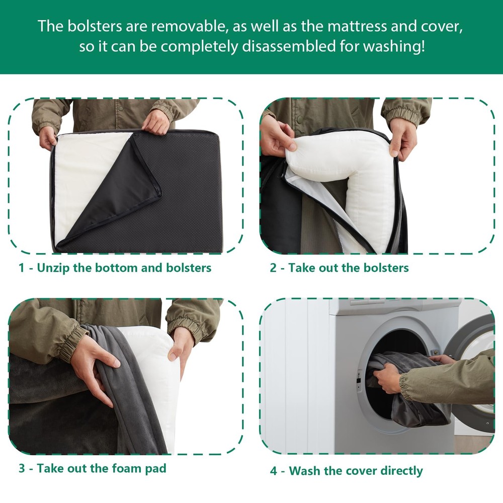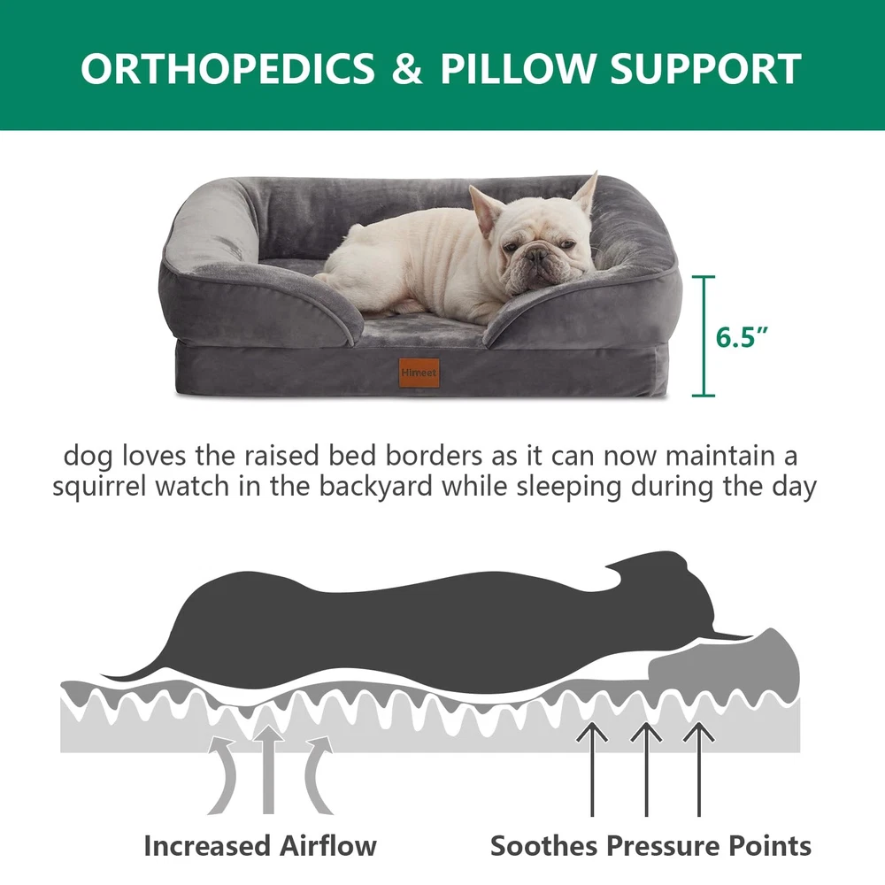 orthopedic machine washable waterproof small u shaped senior chew proof puppy safe easy clean nonskid durable extra medium size large sized xl plus xxl comfort pet removable couch supportive Orthopedic Support:Our dog sofa bed gives your pet great support for deep, restful sleep. The firm, wavy foam spreads weight evenly, easing pressure and supporting joints comfortably. U-Shaped Design: The raised edges give your pet extra head and neck support for deeper rest. The lower front opening protects your pet's knees and makes it easier to get in and out. Easy Care: The rugged foam mattress is covered with a waterproof layer to protect it from accidents or spills. Take off the cover with its zipper in seconds and just toss it in the washing machine-it's easy to clean. Perfect Fit: The size of medium size dog bed is 28"L x 23"W x 6.5"Th. It is ideal for medium dogs up to 30 lbs. Supports joints, eases pressure, and fits perfectly in your space. Puppy-Approved Comfort: Covered in velvety-soft flannel, this supportive bed gives your furry friend soothing comfort they'll enjoy for cozy relaxation.
