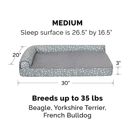 30 Days Return Policy Fast Delivery Trusted seller Orthopedic Dog Bed for Medium/Small Dogs w/ Removable Bolsters & Washable Cover, For Dogs Up to 35 lbs - Plush & Almond Print L Shaped Chaise - Gray Almonds, Medium Product Description COMFORT AS PRIORITY: The stylish L shaped chaise design creates a cozy and inviting space that promotes comfort and security; designed with supportive bolsters for dogs to rest their heads on for optimum lounging comfort SLEEP SURFACE: Featuring a cuddly soft plush faux fur main sleep surface and thick fluffy bolsters wrapped in stylish almond print fabric; both are gentle on noses and paws for enhanced snuggling and burrowing comfort EASY ON JOINTS: The egg crate orthopedic foam base helps cushion pressure points and improve air circulation, while fluff-filled bolsters support the neck, back, hips, and joints; helps ease discomfort and promote restful sleep PRODUCT DETAILS: Orthopedic Dog Bed, Gray Almonds; Medium - 30" x 20" x 6" (3" Base Foam Height; Sleep Surface: Approx. 26.5" x 16.5") AVAILABLE IN: Blue Almonds and Gray Almonds; the dog bed also comes in Medium, Large, Jumbo, and Jumbo Plus sizes IMPORTANT: Not suitable for pets with excessive teething or destructive chewing behavior EASY CARE: The removable dog bed cover is completely machine washable; for more specific cover and foam care instructions, please refer to the hang tag and/or seam label if applicable Shipping Returns Payment Shipping Shipping is FREE to all addresses other than APO/PO boxes in the lower 48 states. All our stock ships from US-based warehouses. Shipped via USPS or UPS (depending on location and package weight) Unless stated otherwise, all orders will ship within 24-72 hours of your payment being processed. Check our feedback to see the great reviews of FAST shipping we offer. Returns As our valued customer, we will do our best to make sure the product you receive arrives to you on time and as expected. If you are not satisfied with your purchase, please contact us within 30 days of receiving your order to process a return. Payment We currently accept payment via eBay managed payments only. Once payment is cleared, we will dispatch your shipment within 1-3 business days. Please refer to the "Shipping" tab for more information regarding shipping speed to your destination.