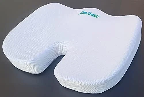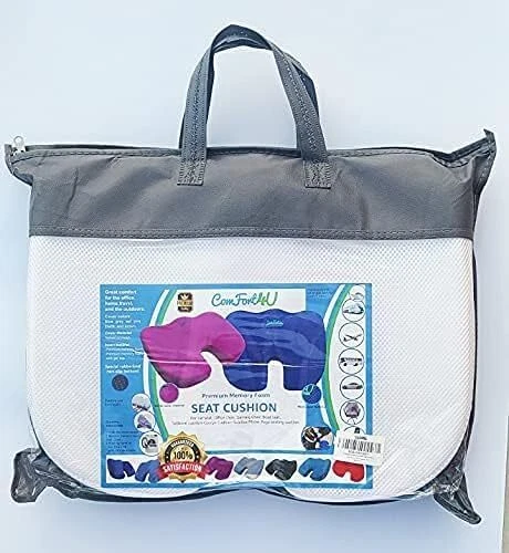 The 'U' seat cushion is designed with a cut out which goes to the back when sitting, with two flat areas to accomodate the body when sitting. This seat Cushion made from Premium Memory foam that does not flatten and regains its shape 100%. It is heat sensitive and takes the shape of the body for maximum comfort. It comes with a hidden zipper fitted cover in mesh or velvet fabric which can be conveniently be removed and washed or replaced. Material: Guaranteed, best quality Memory foam (polyether polyurethane) and fabric (polyester fiber) cover. Shape: Ergonomically engineered shape with body matching contours and a coccyx (tailbone) Pressure relief gap Use: home, office, car, boat, camper, fishing, Park. Our suggestion is to have one or two permanently in the cars, one at work, one at the home office, and have one or two to take out to the park bench, fishing, or stadium. This product is also great for use on wheelchairs, for yoga meditation sitting, On airplanes and trains and even crisscross apple sauce! Special features: Special non-slip bottom to keep it in place, Lightweight, portable, and soft, yet firm. The only seat cushion with White color! Benefits: Pain relief for the back, legs, and hips. Sciatica pain relief. Improves blood flow by relieving pressure, from blood vessels while sitting. Satisfaction guaranteed! Customer satisfaction is our main objective. CAUTION: Nonslip rubber bottom may stain light colored leather/vinyl. Before use, wash the cover in soap and hot water. Once the cover is dry, test for color fastness with a towel and hot water. Packaging: Our product comes in less cumbersome, reusable bags.