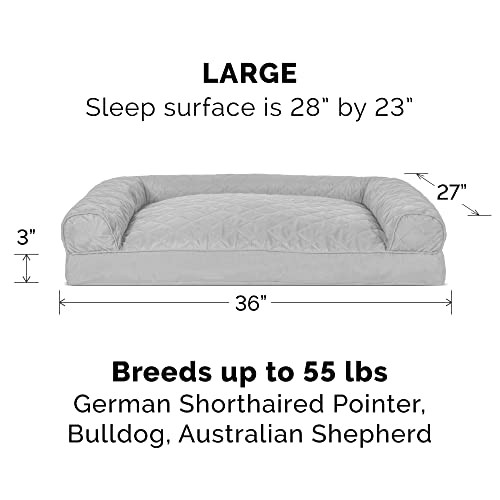30 Days Return Policy Fast Delivery Trusted seller Pillow Dog Bed for Large/Medium Dogs w/ Removable Bolsters & Washable Cover - Quilted Sofa - Silver Gray, Large Product Description COMFORT AS PRIORITY: The sofa-style design creates a cozy and inviting space that promotes comfort and security; designed with supportive bolsters for dogs to rest their heads on for optimum lounging comfort SLEEP SURFACE: Featuring quilted polyester fabric that is gentle on noses and paws for enhanced snuggling and burrowing comfort EASY ON JOINTS: Fluff-filled bolsters support the back, hips, and joints to help ease discomfort and promote restful sleep PRODUCT DETAILS: Pillow Dog Bed, Silver Gray; Large - 36" x 27" x 6.5" (Sleep Surface: Approx. 28" x 23") AVAILABLE IN: Coffee, Wine Red, Toasted Brown, Navy Blue, and Silver Gray; the dog bed also comes in Small, Medium, Large, and Jumbo sizes IMPORTANT: Not suitable for pets with excessive teething or destructive chewing behavior EASY CARE: The removable dog bed cover is completely machine washable; for more specific cover care instructions, please refer to the hang tag and/or seam label if applicable Shipping Returns Payment Shipping Shipping is FREE to all addresses other than APO/PO boxes in the lower 48 states. All our stock ships from US-based warehouses. Shipped via USPS or UPS (depending on location and package weight) Unless stated otherwise, all orders will ship within 24-72 hours of your payment being processed. Check our feedback to see the great reviews of FAST shipping we offer. Returns As our valued customer, we will do our best to make sure the product you receive arrives to you on time and as expected. If you are not satisfied with your purchase, please contact us within 30 days of receiving your order to process a return. Payment We currently accept payment via eBay managed payments only. Once payment is cleared, we will dispatch your shipment within 1-3 business days. Please refer to the "Shipping" tab for more information regarding shipping speed to your destination.