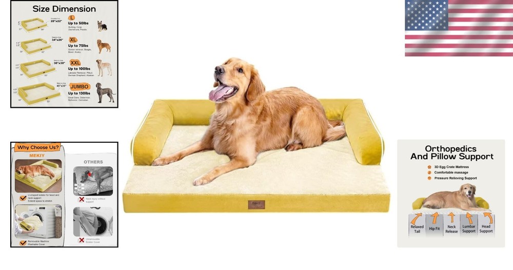 XXL Orthopedic Memory Foam Dog Bed - Waterproof Pet Couch 48x36 Inches