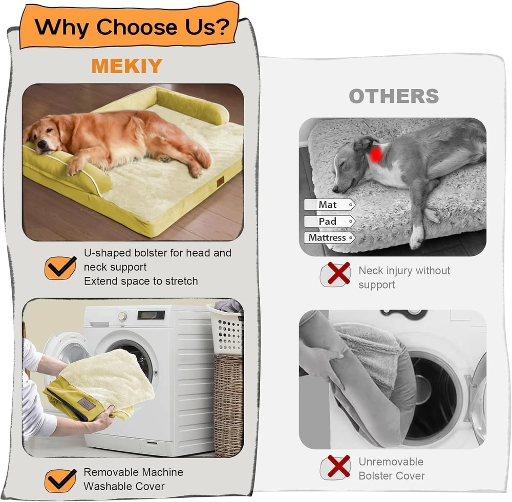 Large Waterproof Dog Bed - Orthopedic & Removable Cover for Dogs Up to 50 lbs ‹ › ‹ › ‹ › ‹ › ‹ › ‹ › ‹ › ‹ › ‹ › ‹ › ‹ › Large Waterproof Dog Bed - Orthopedic & Removable Cover for Dogs Up to 50 lbs Size Guide Dimensions: 36x27x7 inches Suitable for dogs weighing up to 50 pounds, such as Newfoundlands and Bernards. Consider sizing up for dogs that enjoy rolling around or require extra space for optimal comfort. Features: Ergonomic internal cushion made of orthopedic egg crate foam for optimal neck and spine support. Unique U-shaped pillow design for enhanced neck support. Soft velvet fabric for added comfort and an elegant touch to your home decor. Waterproof and machine washable for easy maintenance. Non-slip bottom to prevent sliding and ensure stability on all types of floors. Removable and washable cover to keep the bed fresh and clean. Why Choose Our Large Waterproof Dog Bed? Give your furry companion the gift of comfort and support with our Large Waterproof Dog Bed. Expertly crafted for dogs up to 50 lbs, this bed combines orthopedic design with a stylish and functional U-shaped bolster, ensuring your pet sleeps peacefully while relieving pressure on their neck and spine. Its waterproof feature ensures protection against accidents, while the removable cover guarantees effortless cleaning. A perfect addition to your pet's happiness and a thoughtful gift for any pet lover, this dog bed elevates the standard of pet comfort. Spoil your beloved companion today with the ultimate in relaxation and support—order now! Shipping Free & Fast Shipping - We offer free shipping to most of the USA with a normal delivery time of 3-7 days. However, due to the current situation, additional delivery time (up to 3 weeks) may be required for some items. Alternative Carriers - We may use alternative carriers (e.g. USPS, FedEx, UPS, etc.) to ensure your package arrives safely and on time. Due to the use of multiple carriers, we are unable to provide a tracking number automatically. Handling Time - Orders are processed and shipped within 1-2 business days of receiving cleared payment. Shipping Restrictions - Shipping to Alaska, Hawaii, Puerto Rico, Guam, and other US territories may incur shipping charges or delivery restrictions. Please contact us before ordering, or your order can be refunded/cancelled. State Restrictions - There may be restrictions based on your state of purchase. For example, certain items may not be shipped to California due to state regulations. Contact for Tracking Updates - If you require tracking updates or have any concerns about the delivery of your order, please feel free to contact us, and we will be happy to assist you. Return 30-Day Hassle-Free Returns - We want you to be completely satisfied with your purchase. If you are not, you can return the item within 30 days of receiving it for a full refund or exchange. Easy Return Process - To start a return, simply contact us and we will provide you with a prepaid return shipping label and detailed instructions. Restocking Fee - There are no restocking fees for returns. However, the buyer is responsible for return shipping costs if the return is not due to a seller's error. Refund Processing Time - Refunds will be processed within 5 business days of receiving the returned item in its condition. Payment We accept all major credit cards, PayPal, and Apple Pay for your convenience. Your payment information is secure and encrypted to ensure a safe and seamless transaction. Please complete your payment within 3 days of purchase to avoid any delays in shipping. Feedback Your feedback is extremely important to us. We strive to provide the best products and customer service possible. If you are satisfied with your purchase, please take a moment to leave us a positive review. If you have any concerns or issues with your order, please contact us before leaving negative feedback. We are committed to resolving any problems and ensuring your satisfaction. Contact Us If you have any questions or concerns, please feel free to out to our customer support team. You can contact us through the eBay messaging system. We are available Monday to Friday, 9:00 am to 5:00 pm EST, and we will do our best to respond to your inquiry within 24 hours. Buy it now and enjoy a pleasant shopping experience! Unit Quantity: 6.16 pounds Features: Machine Washable,Orthopedic,Removable Cover,Waterproof,Washable,Non-Slip Bottom,U Shaped Bolster Dog Size: L Dog Breed: Large Dog Type: Dog Bed Material: Polyester