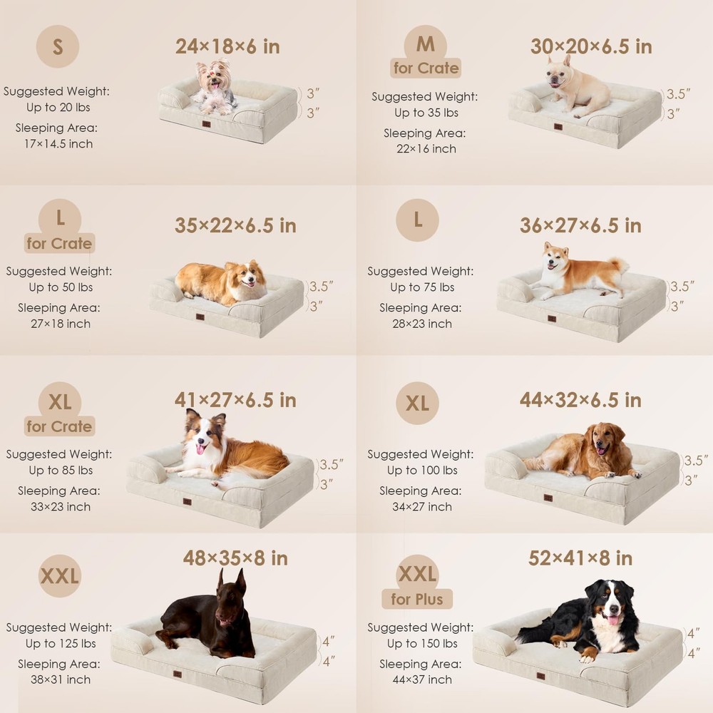 Provide your beloved furry friend with the ultimate comfort and support they deserve with the Orthopedic Dog Bed for Large Dogs. This premium bed is designed to cater specifically to the needs of your large dog, offering a combination of orthopedic support, waterproof durability, and luxurious comfort. Featuring a memory foam base, this dog bed contours to your dog's body shape, providing optimal joint relief and support. The egg-crate foam design further enhances comfort and promotes airflow, keeping your dog cool and cozy. It ensures a restful and rejuvenating sleep, crucial for your dog's overall well-being. The sides of the bed provide a sense of security and coziness, making it the perfect spot for your pooch to curl up and relax. The non-slip bottom ensures stability, preventing the bed from sliding or shifting, even during your dog's playful movements. Cleaning and maintenance are a breeze with the washable and removable cover. Simply unzip the cover and toss it in the washing machine for a fresh and clean bed. The stylish grey color adds a touch of modern elegance to any room, seamlessly blending with your home decor. Whether it's in a crate, kennel, or used as a standalone bed, your dog will appreciate the comfort and support it provides. It is specifically designed for large dogs of all ages, making it an ideal choice for both senior dogs in need of orthopedic support and energetic pups that love to play. MEMORY FOAM: orthopedic dog bed uses memory foam and egg crate foam that can evenly support to relieve pressure, and provides a good amount of softness and support. The memory foam dog bed especially suits elderly dogs to relieve pressure on joints. SOFA BED DESIGN: This bolster dog bed has 3-sided bolster to add additional support for the pet's neck and head, and let them have a restful sleep. Dog bed with sides help your dogs snuggle up and enjoy sleeping. WATERPROOF FILM and NON-SLIP BOTTOM: There is a waterproof film between the fleece surface and the bottom fabric that makes the dog bed waterproof. However, the faux linen on the side is not waterproof. A non-slip point on the bottom is not easy to slide, and keeps your dog bed steady. EXTREME COMFORT and MULTIPLE SIZES: The sleeping surface is covered with flannel, providing a soft and comfortable sleeping area for your pet. No matter how big your pet is, it's a dog bed for medium, large and extra large dogs. MACHINE WASH and CARE INSTRUCTION: Our washable dog bed with removable cover has zipper closure and can be easily cleaned. Just get the foam off and it can be machine washed directly with the sides. Please note that the inner foam is not washable. After receiving it, leave it for 24-48h for rebound.