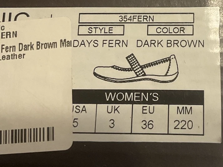 UK Shoe Size: 3 Brand: Vionic Personalize: No US Shoe Size: 5 Shoe Width: Standard Department: Women Customized: No Upper Material: Leather Style: Days Fern Heel Height: Low (1-1.9 in) Features: Comfort Country/Region of Manufacture: China Season: Spring, Fall, Summer Occasion: Casual Closure: Slip On Vintage: No Color: Dark Brown