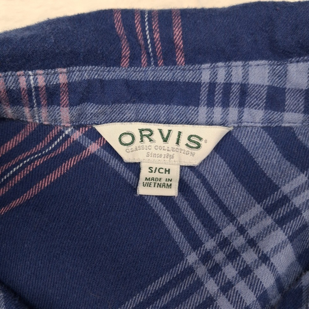 Sleeve Type: Long Sleeve Handmade: No Accents: Button Sleeve Length: Long Sleeve Country of Origin: Vietnam Closure: Button Neckline: Collared Style: Basic Features: Lightweight Size: S Material: Cotton, Polyester, Spandex Size Type: Regular Garment Care: Machine Washable Brand: Orvis Fabric Type: Flannel Personalize: No Pattern: Plaid Fit: Regular Color: Purple Season: Fall, Spring, Winter Type: Button-Up Theme: Fish, Outdoor Department: Women