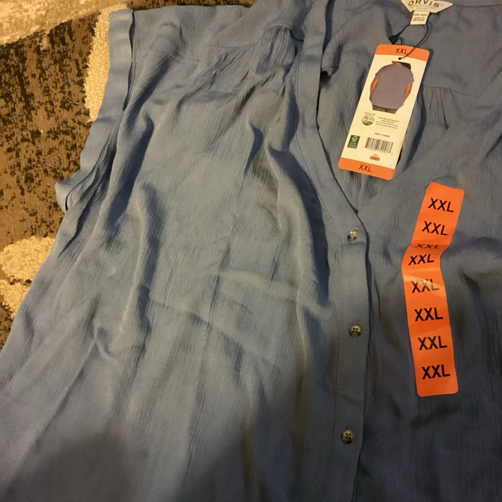 This Orvis blouse is a must-have for any wardrobe. The solid blue color and V-neckline make it a versatile piece that can be dressed up or down. The short sleeves and roll cuffs add a touch of elegance, while the button closure and accents give it a classic look. Made from 100% rayon, this blouse is machine washable for easy care. It comes in a size XXL and is perfect for plus size women. The blouse is a regular fit and has a solid pattern, making it a basic yet stylish addition to any outfit.