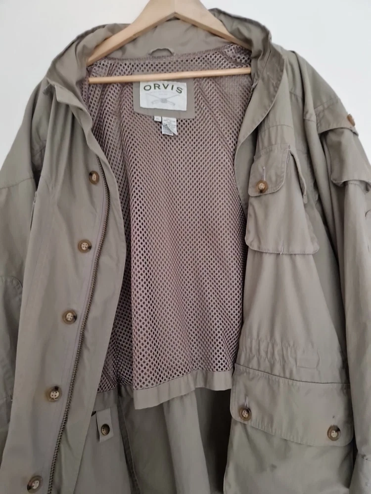 This Orvis Men's Safari Style Jacket in XL size is made from durable cotton with a canvas fabric type, perfect for casual wear. The beige colour adds a touch of versatility to the jacket, while the polyester insulation material ensures warmth. With multiple pockets for added convenience, this jacket combines practicality with style in a safari-inspired design. Easy to care for with machine washable instructions, this jacket from a trusted brand like Orvis is a great addition to any man's wardrobe.