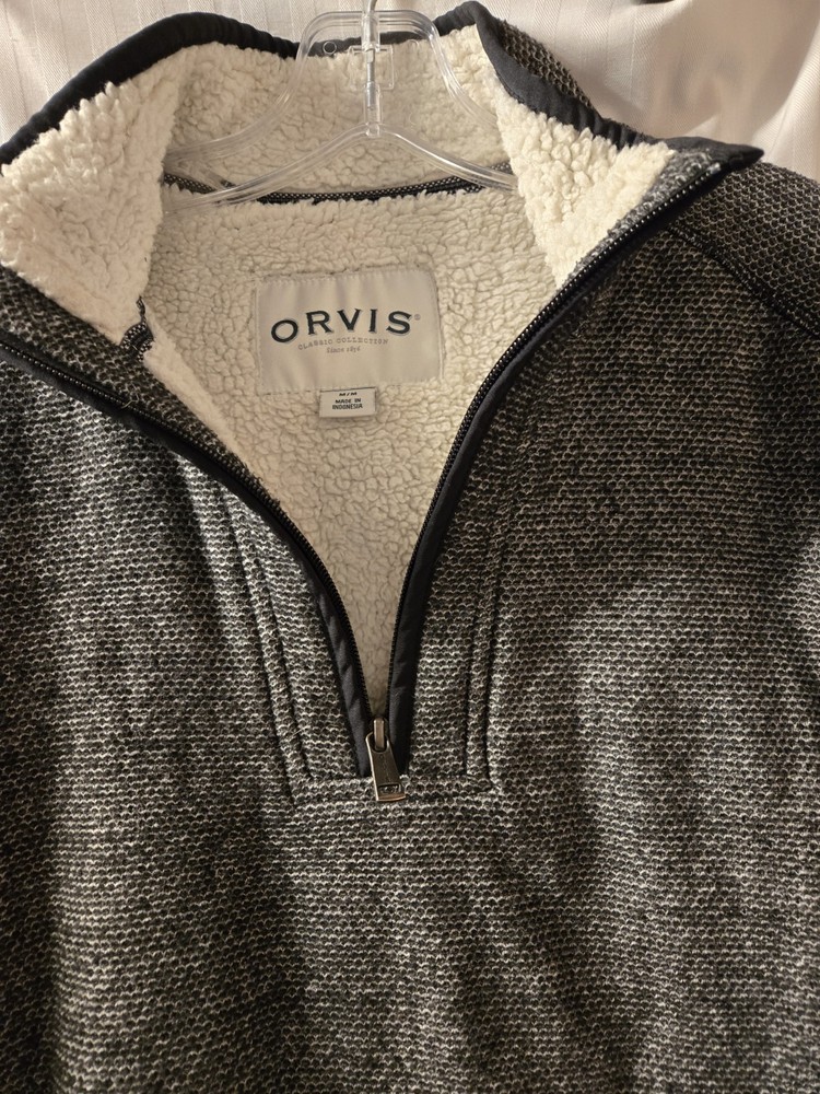 The Orvis Men’s Classic Collection fleece Sherpa Lined quarter zip pullover in size M is a versatile and stylish jacket perfect for various occasions such as travel, casual outings, workwear. Made of polyester with sherpa lining, this pullover provides warmth and comfort during the winter, fall, and spring seasons. The classic wing collar style and mid-length fit make it a timeless addition to any man's wardrobe, suitable for walking and hiking activities. Easy to care for with machine washable instructions, this pullover in a sophisticated gray color is a must-have for any man.