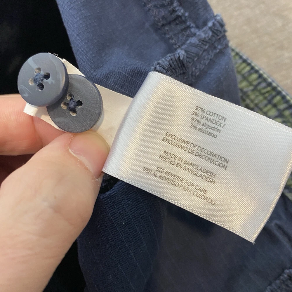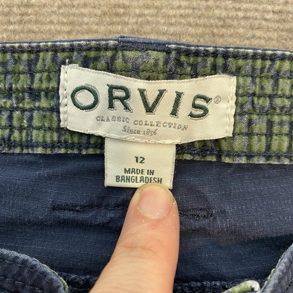 Closure: Button Garment Care: Machine Washable Fabric Type: Knit Fit: Relaxed Size: 12 Brand: Orvis Handmade: No Size Type: Regular Country/Region of Manufacture: Bangladesh Personalize: No Department: Women Season: Fall, Spring, Summer, Winter Features: Pockets, Stretch Theme: Beach, Nature Pattern: Solid Color: Blue Inseam: 26 in Rise: Mid (8.5-10.5 in) Type: Pants Material: Cotton, Spandex Front Type: Flat Front Leg Style: Straight Style: Ankle Occasion: Casual, Travel, Workwear