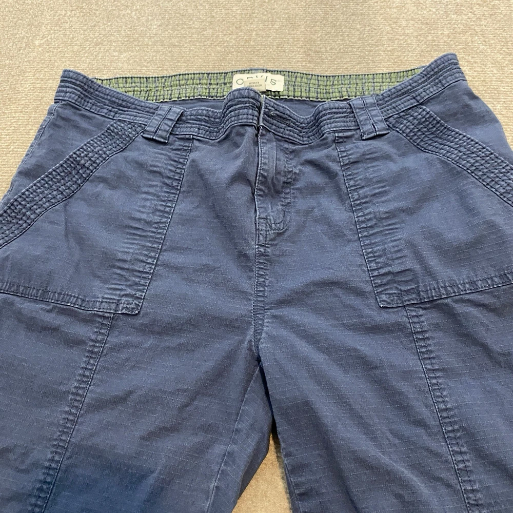 Orvis Pants Women's Size 12 Blue Pockets Casual Ankle Roll Up Rip Stop Stretch