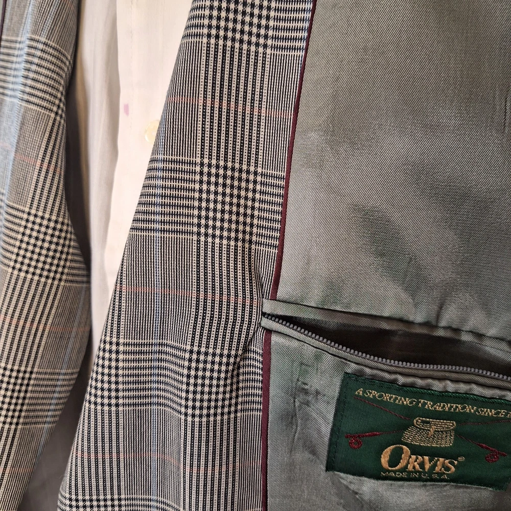 Orvis Sport Coat Blazer Mens 40R Black White Plaid VTG Made in USA Quality Used condition Check out the Measurements Below. Shirt Size on Label 40R Shoulder- Hem 29.00'' Shoulder- Shoulder 18.00'' Shoulder- Wrist 25.00'' Armpit- Armpit 22.00'' 20.00'' Everything ships within a day. Feel free to message me with any questions. Thank you very much. 10/25/23