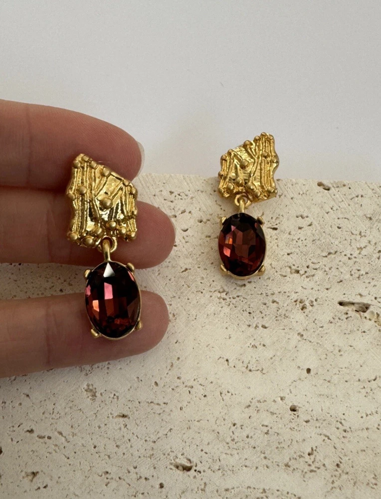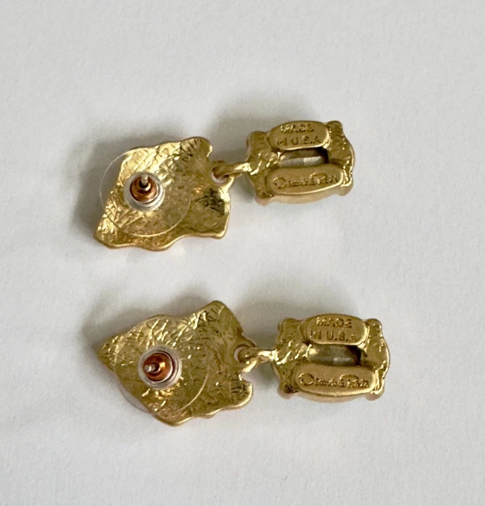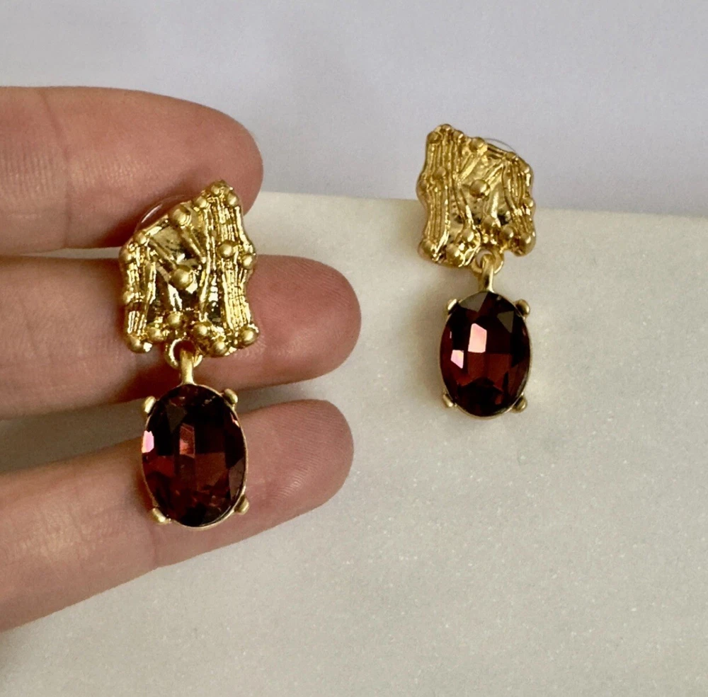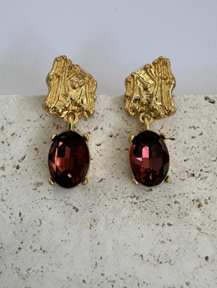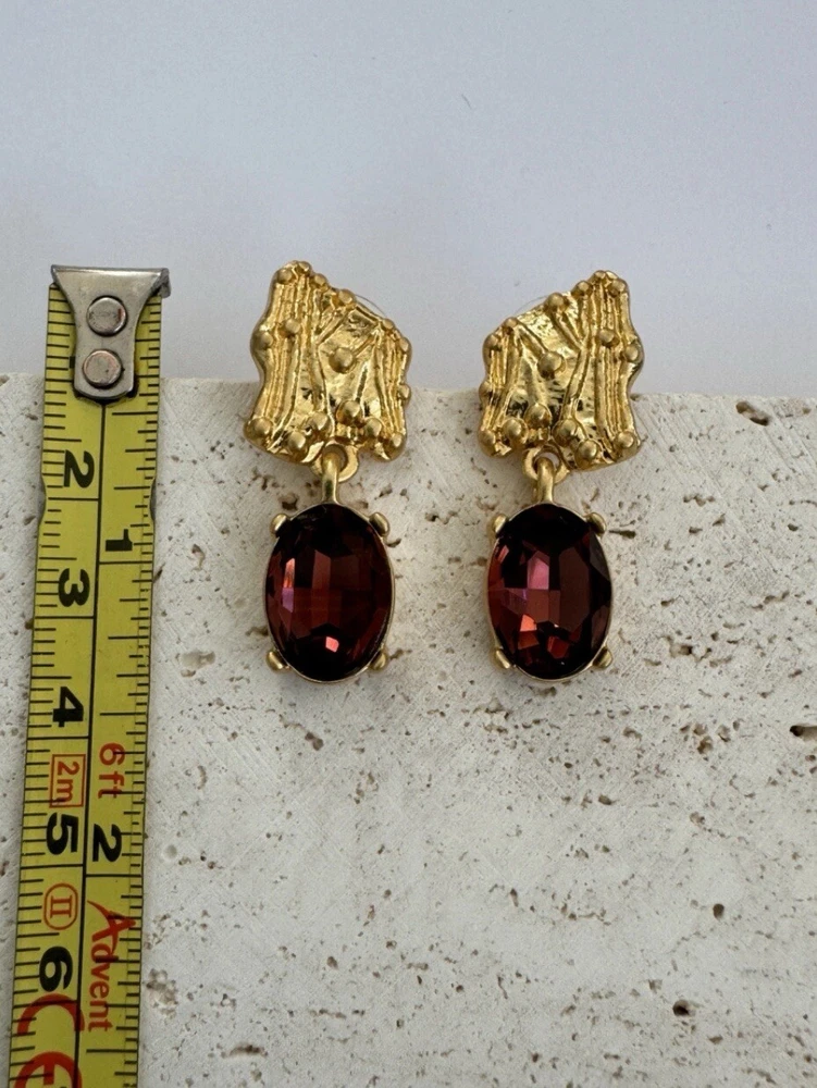 Oscar de la Renta stunning gold plated earrings with Bordeaux toned crystals. Authentic, never worn. Lightweight, exquisite, for pierced ears. Base metal brass, gold plated. Nickel free. They will go with anything. Please note sold without the original packaging, hence the lower price. From a smoke free & pet free home. Happy to combine postage 🌟