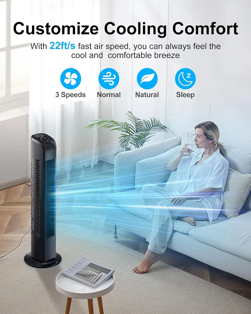 Store New Arrivals Add to Favorite View Feedback Contact Oscillating Tower Fan with Remote, Electric Standing Tower Fan Floor Fan for Bedroom Indoor Office and Home Use,Quiet Cooling Portable Bladeless Tower Fans, 30 Inchs, Black Tower Fan Description Item model number Tower Fan 03 Style Modern Assembly required Yes Noise Level 42 dB Control Method Touch Warranty Description 1 year manufacturer Is Electric Yes Mounting Type Free Standing Controller Type Remote Control Theme home Specification Met ETL Main Power Connector Type Standard Household Plug (Type A or Type B) Number of Power Levels 3 Power Source ac Switch Type remote Batteries required Yes Product Dimensions 8"D x 8"W x 30"H Care instructions Hand Wash Pattern Name Fan Model Name Oscillating Tower Fan Collection Name Home,Office Finish Type Clear Cut Included Components Tower Fan,Front Fan Base,Rear Fan Base,Thumbs Screws,Remote Controller Indoor/Outdoor Usage Indoor Light Type LED Country of Origin China Room Type Kitchen, Bedroom, Living Room, Home Office, Study Room Connector Type Standard Household Plug (Type A or Type B) Item Weight 5.5 pounds Number of Blades 1 Material Acrylonitrile Butadiene Styrene Number of Speeds 3 Special Feature Bladeless, Oscillating, Remote Controlled, Timer, Energy Saving Electric fan design Floor Fan Color Black Wattage 60 Watt-hours Is Cordless? No Batteries 1 CR2 batteries required. (included) Voltage 120 Recommended Uses For Product Cooling, Air Circulation Blade Material Plastic Finish types Clear Cut Size 30 inches Number of pieces 1 【Custom Wind Mode】: Tower Fan have three wind speeds and three modes: normal mode, which provides a steady flow of air, and "natural wind" mode, which changes constantly between different wind intensities, like being in a forest. Sleep mode, gentle wind, enjoy a quiet sleep environment.,Match your multiple needs..Wattage:60 watt_hours.Voltage:120 volts.Number of speeds:3 【Broad Oscillating】: Bring cool winds to where you need them through a controlled wide Angle swing. Accelerate indoor air circulation, combined with air conditioning collocation use more energy saving, money saving, the best effect. 【Easy to Operate】: Whether you are sitting on the sofa or lying in bed, you can use the touch control panel or remote control,easily adjust the speed and adjustment mode, or turn on and off the fan and timing (7.5 hours of timing off) function. Without operation in 30s, the control panel is screen-off,and all functions are remained, which is easier to fall asleep for people with sensitivity to light 【Safety Design】: ETL certified tower fan with narrow fence to create strong airflow and prevent accidental contact, perfect for families with curious children and pets. Equipped with a safety plug to prevent voltage overload and surge damage to the fan, you can use with confidence. 【Space-Saving】: The slim, lightweight, space-saving tower design takes up less space and can accommodate small Spaces that cannot be accommodated by traditional room fans. Welcome to add to your bedroom, study, office, etc. Uthfy - Comfortable and healthy life Safe and Reliable: This ETL certified tower fan is safe for your family. The bladeless Oscillating fan creates powerful airflow without fast spinning blades. The safety design prevents children and pets from putting fingers and paws inside. The fused safety plug prevents damage from power surges. It includes multiple safety features so you can use it with peace of mind. Wide Oscillation: Send the wind evenly to all corners of the room to cool the air faster. It can save energy and money when used with air conditioner. Remote for Esay to Use: Equipped with remote control, this tower fan is user friendly and designed for full range control when you are sitting on the couch or lying in bed. Portable Carrying Handle: Comes with a built-in carrying handle for easy transport, allowing it to easily be moved. Ideal for office, bedroom, living room, kitchen, study, RV, dorm, etc. 7.5H Timer: Automatically switch off the tower fan by setting the 7.5 hour timer in 0.5 hour increments, saving unnecessary energy consumption. ABOUT US We offer the best prices around on high quality products. Our E-store includes media such as books, movies, music and games while offering electronics, toys, sporting apparel, clothing, tools, general home, garden items and more. SHIPPING We are always working hard to ensure your package arrives as soon as possible. Please understand that some factors like weather, high postal traffic, and the performance of shipping companies are outside of our control. We offer free shipping to the lower 48 states and ship within 2 business days of payment, usually sooner. We do not accept P.O. Boxes. Please provide a physical address. For shipping outside of the continental USA, we only use eBay's Global Shipping Program.The item is shipped to KY and then sent to the rest of the world. International customers are responsible for all duties and taxes. Continue to check out in order to calculate costs for shipping the item to your country. Messages regarding eBay's Global Shipping Program MUST be directed at eBay EXCLUSIVELY. RETURNS We offer a 30-Day Return Policy on items which you are not completely satisfied with. You have the option for a full-refund or an exchange of the item. No returns are available on items shipped outside of the USA. PAYMENT We accept PayPal. CONTACT US This page content is yet to come Please ad us to your favorite seller and visit again later Thank You CUSTOMER SATISFACTION We try our very best to make sure every customer is completely satisfied. If there's a problem, message us! We're happy to help. WE ACCEPT Copyright © 2021 AutoDS. | All Rights Reserved
