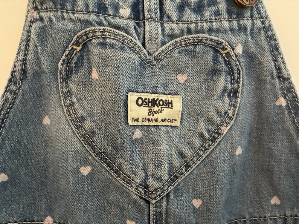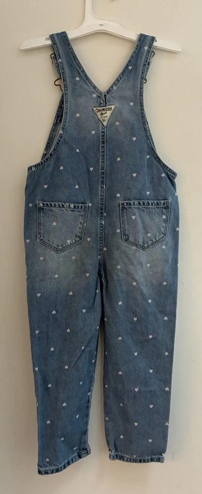 Number of Pieces: 1 Piece Neckline: Square Neck Pattern: Hearts Material: 100% Cotton Fabric Type: Denim Country of Origin: Bangladesh Color: Blue Size: 4T Seller Notes: “In very good condition. Free of rips or stains.” Closure: Hook & Eye Brand: OshKosh B’gosh Department: Girls Sleeve Length: Sleeveless Type: One-Piece Season: Fall, Spring, Winter Features: Adjustable Strap, Comfort, Easy Care, Lightweight, Pockets Theme: Heart, Love Occasion: Casual Style: Overall Garment Care: Machine Washable