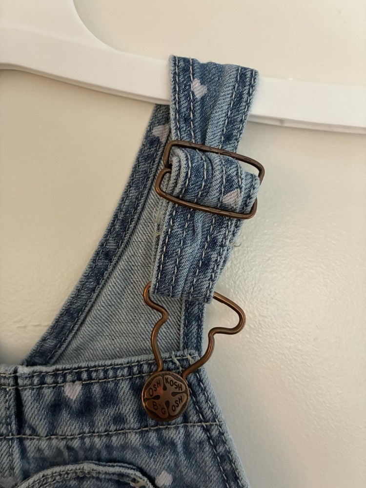 OshKosh B'Gosh Toddler Girls Heart Print Adjustable Strap Denim Overalls Blue 4T. Condition is pre-owned. Smoke free, pet free home. Shipped via USPS Ground Advantage. In very good condition. Free of rips or stains.