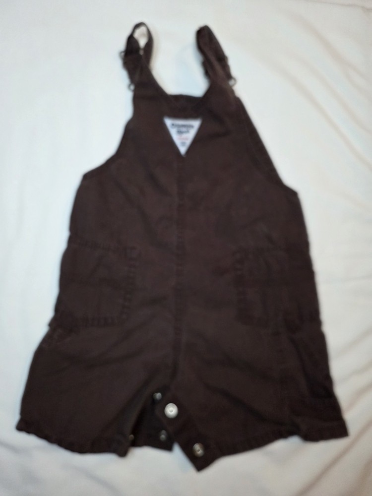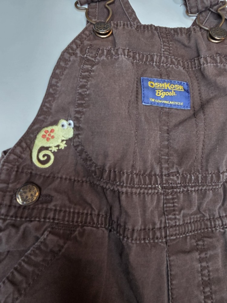 The Oshkosh B'Gosh Vintage Brown Bib Overall Shorts in size 24 months are a stylish and comfortable choice for baby boys. Made from 100% cotton, these one-piece overalls feature a solid brown color with a jungle animal print, perfect for a casual occasion. The sleeveless design and machine washable garment care make them easy to wear and care for during the summer, fall, and spring seasons. With a vintage appeal and the trusted OshKosh B'Gosh brand, these bib overalls are a timeless addition to any little boy's wardrobe.
