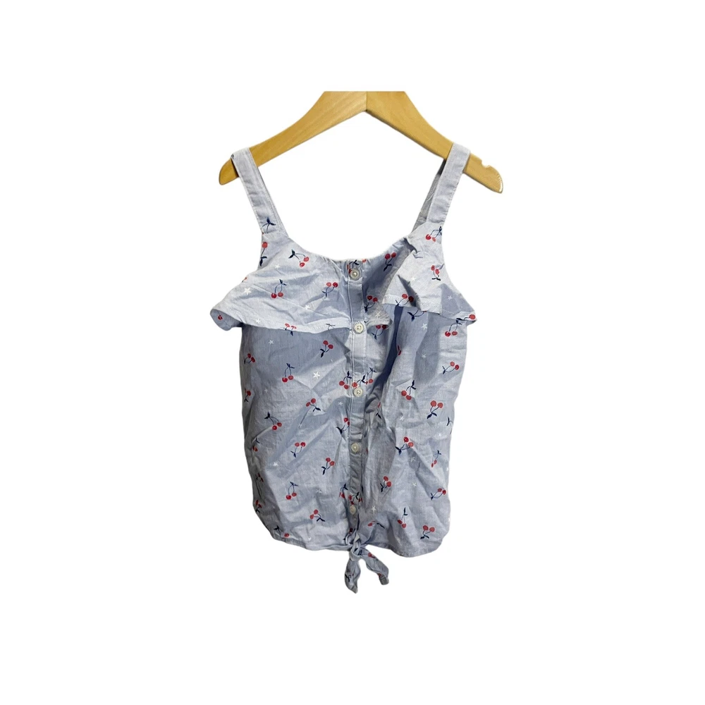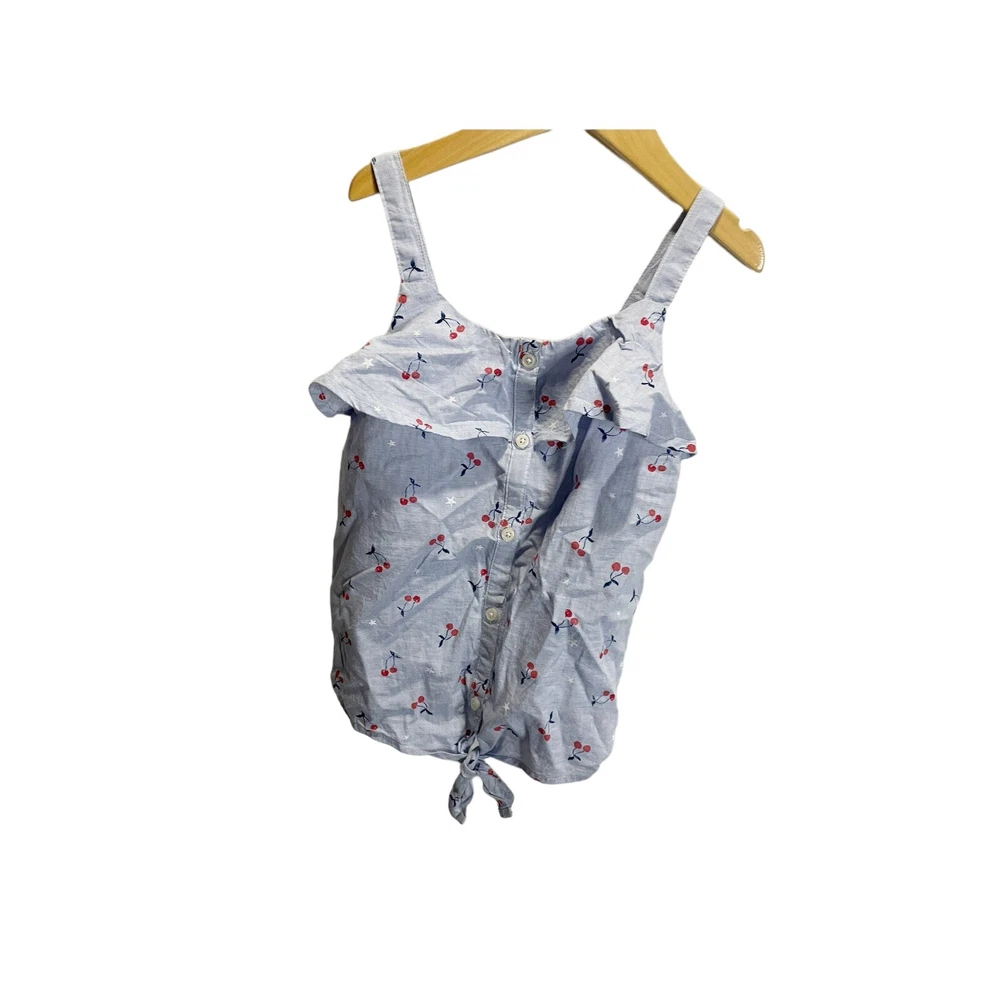 Oshkosh Cherry Blouse Shirt Top Girls 6 Blue. Red Sleeveless Button Front