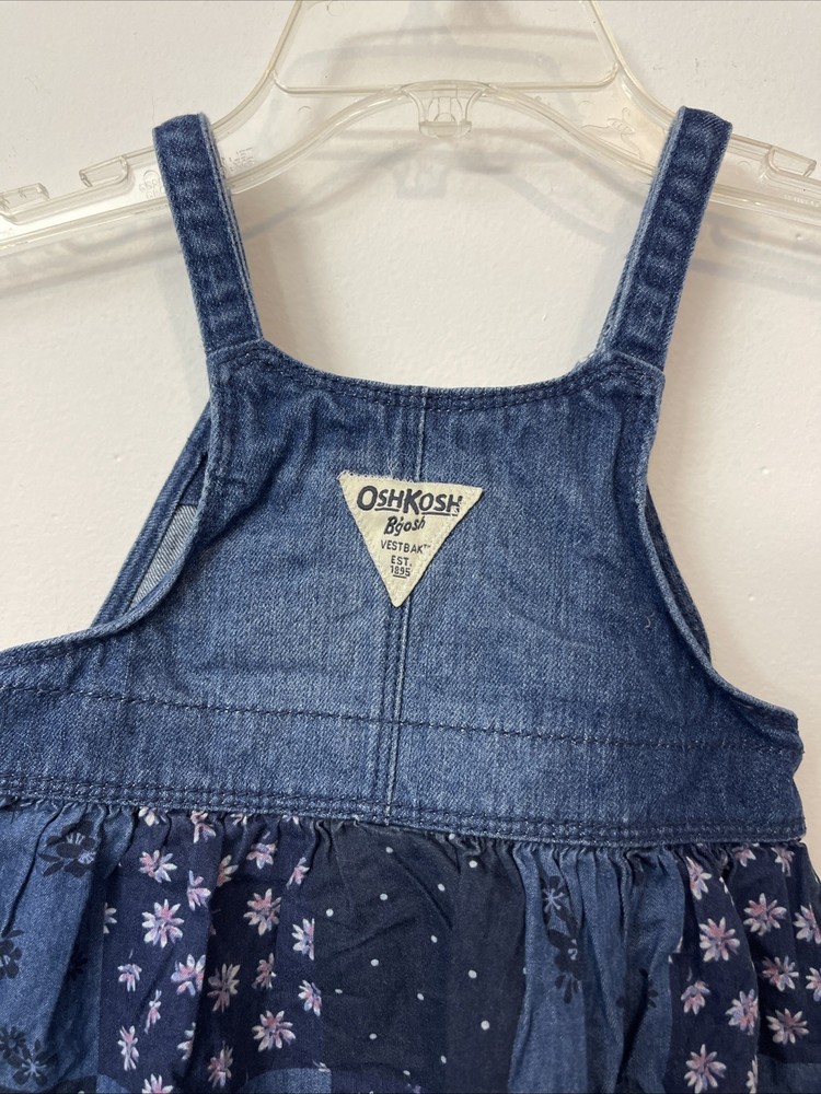 Oshkosh Girls 2t Blue Denim Cotton Sleeveless Overall Dress! A5350