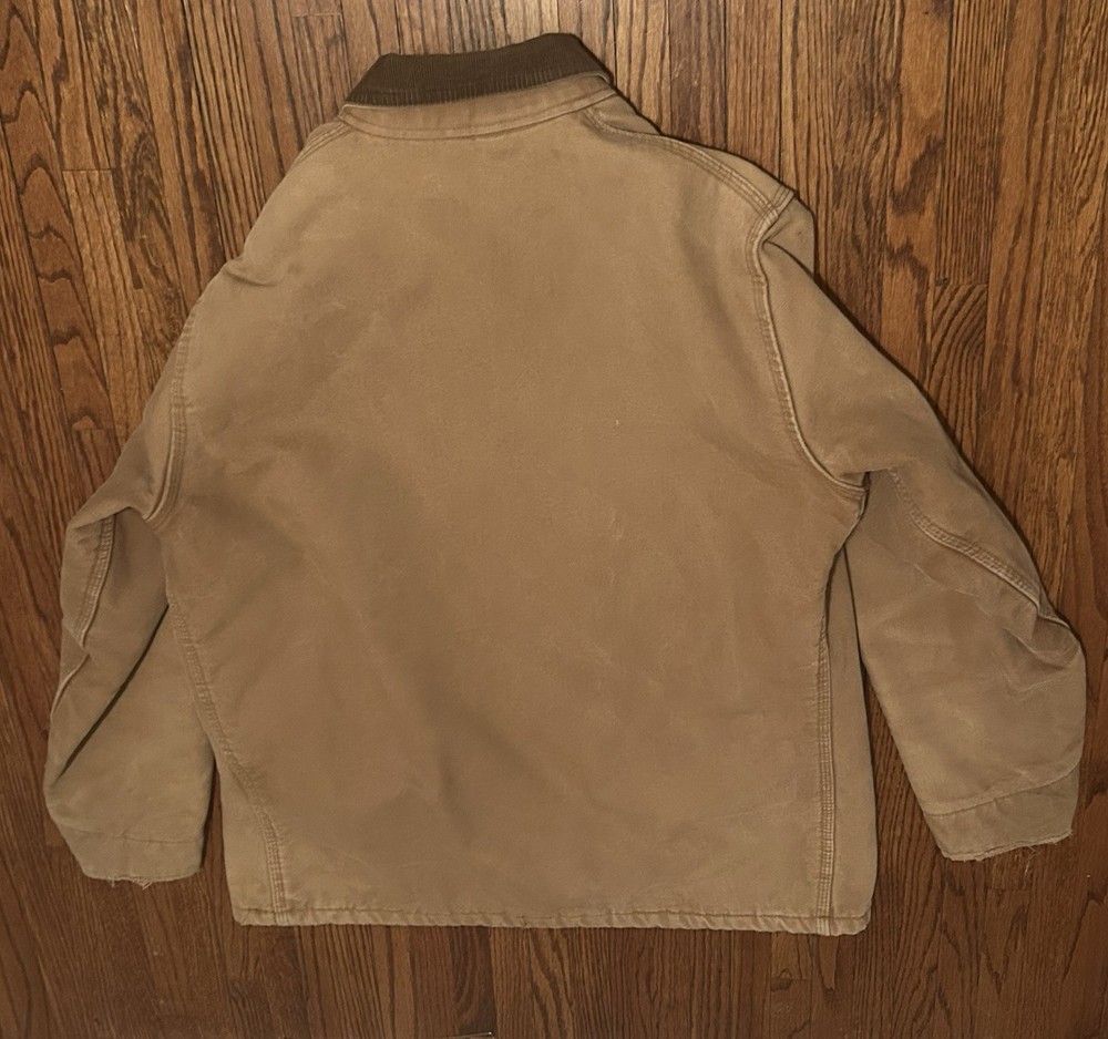 The Oshkosh Men's Brown Canvas Blanket Lined Barn Distressed Jacket in size 42 regular is a stylish and practical outerwear option for men. Made with durable canvas material and featuring a cozy blanket lining, this jacket is perfect for keeping warm during colder weather. The distressed brown color adds a trendy touch to the classic jacket style, making it a versatile piece for any man's wardrobe.
