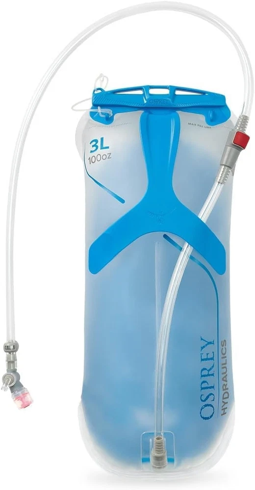 Osprey Hydraulics Backpack Water Reservoir with Bite Valve 3L, Clear Product Details Product Dimensions: 7.09"W x 15.35"H Strap Type: No Strap Capacity: 3 Liters Pocket Description: Utility Pocket Number Of Pockets: 1 Tank Volume: 3 Liters Manufacturer: Osprey Item Package Dimensions L x W x H: 21.77 x 13.62 x 3.58 inches Package Weight: 0.36 Kilograms Item Dimensions LxWxH: 7.09 x 7.09 x 15.35 inches Brand Name: Osprey Model Name: 3L Water Reservoir Suggested Users: unisex-adult Part Number: 10005148 Style: Hydraulics Included Components: 1 Water Reservoir Size: 3L Brand: Osprey Color: Clear Material: TPU Film Sport: Cycling Item Weight: 8.32 ounces Leakproof Slide-Seal Opening – A one-handed top closure design opens wide for easy filling and cleaning, then seals securely to prevent leaks on the move. Rigid & Stable Backer Plate – A lightweight, internal backplate adds structure to help the reservoir slide into your pack and stay upright during use. Slim, Slosh-Free Profile – A central baffle reduces water slosh and helps the Osprey Hydraulics 3 L Reservoir maintain a streamlined, low-bulk shape when full. Magnetic Bite Valve & Hose – Reservoir includes a high-flow bite valve with on/off switch and magnetic attachment for convenient drinking access while hiking, biking, camping, fishing, traveling and more. BPA-Free, Pack-Compatible Design – This extra-large reservoir works with most hydration-compatible Osprey packs and the HydraClip hanger system for quick integration.