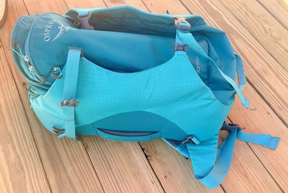 Osprey Porter 46 Backpack 46L Teal Travel Carry On Duffel Pack Outdoor Hiking. I have only used it once, great shape.