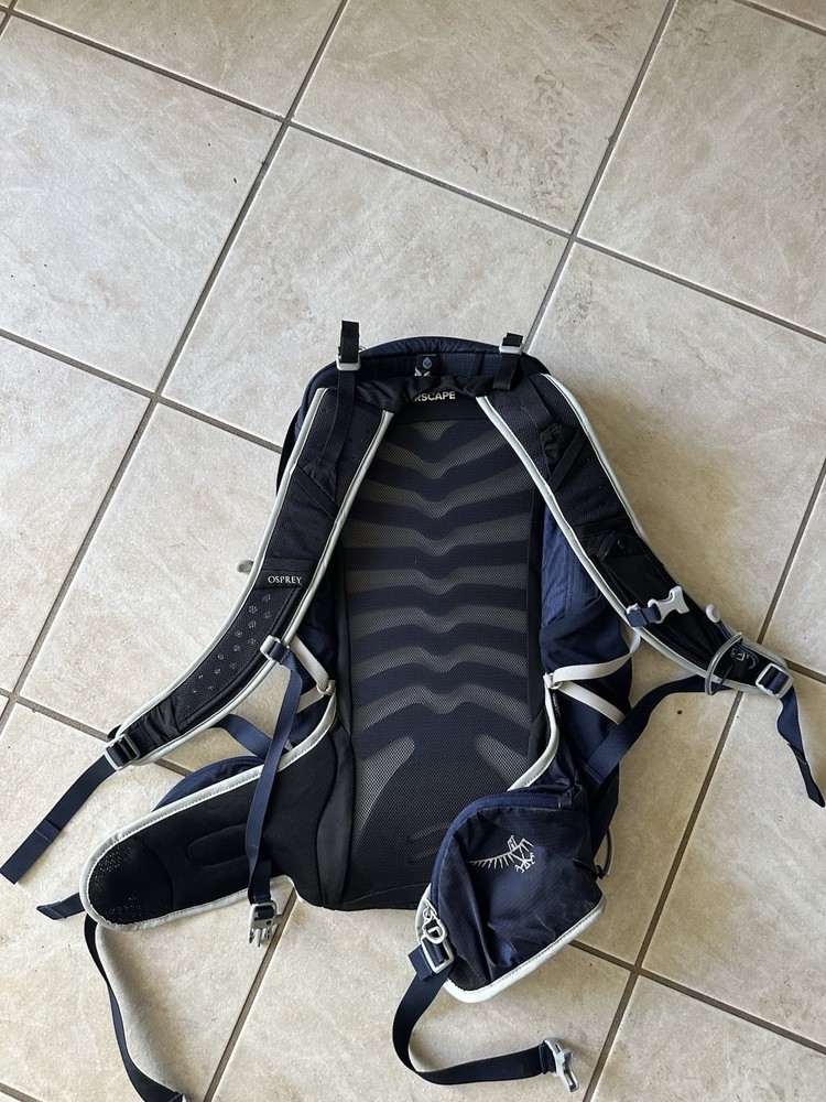 Insect Repellent Treated:NoSport/Activity:HikingFeatures:Hip BeltBrand:OspreyNumber of Pockets:6Event:HikingPersonalized:NoDepartment:MenColor:BlueMaterial:NylonCapacity:11 to 20LClosure:ZipFrame Material:Nylon