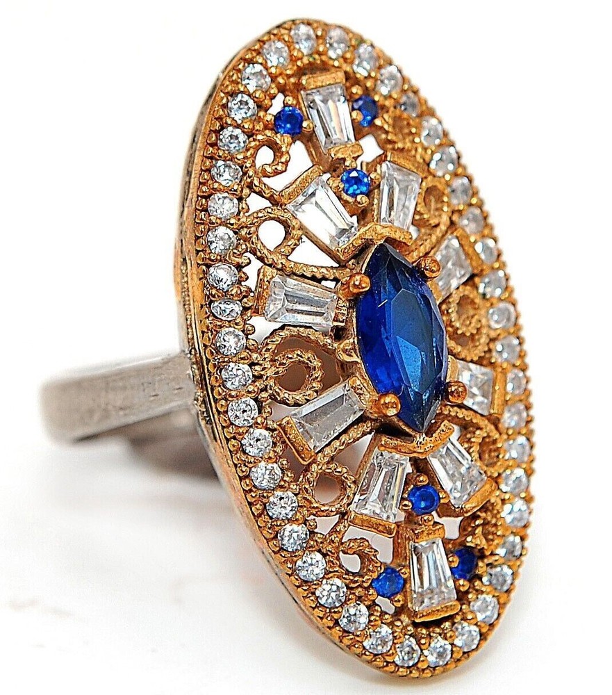 Menu Store FAQ Payment Shipping returns Feedback CONTACT US SHOP BY RING SIZE 4 4.5 5 5.5 6 6.5 7 7.5 8 8.5 9 9.5 10 10.5 11 11.5 All STORE CATEGORIES 99 cent daily deals Auctions Ending Soon New Arrivals Buy it now Rings Pendants Earrings Necklace Bangles & Bracelets POPULAR STONES Aquamarine Ruby Sapphire Pink Sapphire NATURAL GREEN SAPPHIRE Topaz Opal Pearl Amethyst Blue Topaz Kunzite Herkimer Diamond Hand Carved Fossils Citrine Garnet Alexandrite Natural Rough Two-Tone Sterling Silver Store Newsletter Add old-english-silver to your Favorites and receive our e-mail newsletters about new items and special promotions. General Interest Sign Up Gemstone : TREATED BLUE SAPPHIRE & WHITE TOPAZ Metal : Genuine 925 Solid Sterling Silver Total Carat Wt : 2 Total Gram Wt : 7 Dimensions : 1" Long Ring Sz : 9 Shipping & Handling
