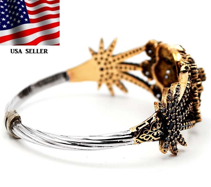 Menu Store FAQ Payment Shipping returns Feedback CONTACT US SHOP BY RING SIZE 4 4.5 5 5.5 6 6.5 7 7.5 8 8.5 9 9.5 10 10.5 11 11.5 All STORE CATEGORIES 99 cent daily deals Auctions Ending Soon New Arrivals Buy it now Rings Pendants Earrings Necklace Bangles & Bracelets POPULAR STONES Aquamarine Ruby Sapphire Pink Sapphire Emerald Topaz Opal Pearl Amethyst Blue Topaz Kunzite Herkimer Diamond Hand Carved Fossils Citrine Garnet Alexandrite Natural Rough Two-Tone Sterling Silver Store Newsletter Add old-english-silver to your Favorites and receive our e-mail newsletters about new items and special promotions. General Interest Sign Up Gemstone : Treated Blue Sapphire & WHITE TOPAZ Metal : Genuine 925 Solid Sterling Silver Total Carat Wt : 12 Total Gram Wt : 26 Dimensions : 1 3/4'' X 2 1/5'', 8" Inner Circumference Shipping & Handling