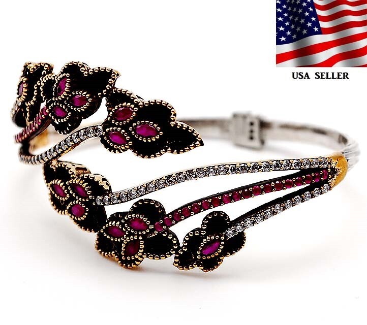 Menu Store FAQ Payment Shipping returns Feedback CONTACT US SHOP BY RING SIZE 4 4.5 5 5.5 6 6.5 7 7.5 8 8.5 9 9.5 10 10.5 11 11.5 All STORE CATEGORIES 99 cent daily deals Auctions Ending Soon New Arrivals Buy it now Rings Pendants Earrings Necklace Bangles & Bracelets POPULAR STONES Aquamarine TREATED RUBY Sapphire Pink Sapphire Emerald Topaz Opal Pearl Amethyst Blue Topaz Kunzite Herkimer Diamond Hand Carved Fossils Citrine Garnet Alexandrite Natural Rough Two-Tone Sterling Silver Store Newsletter Add old-english-silver to your Favorites and receive our e-mail newsletters about new items and special promotions. General Interest Sign Up Gemstone : TREATED RUBY & WHITE TOPAZ Metal : Genuine 925 Solid Sterling Silver Total Carat Wt : 6 Total Gram Wt : 22 Dimensions : 2'' X 2 1/2'', 7.5" Inner Circumference Shipping & Handling
