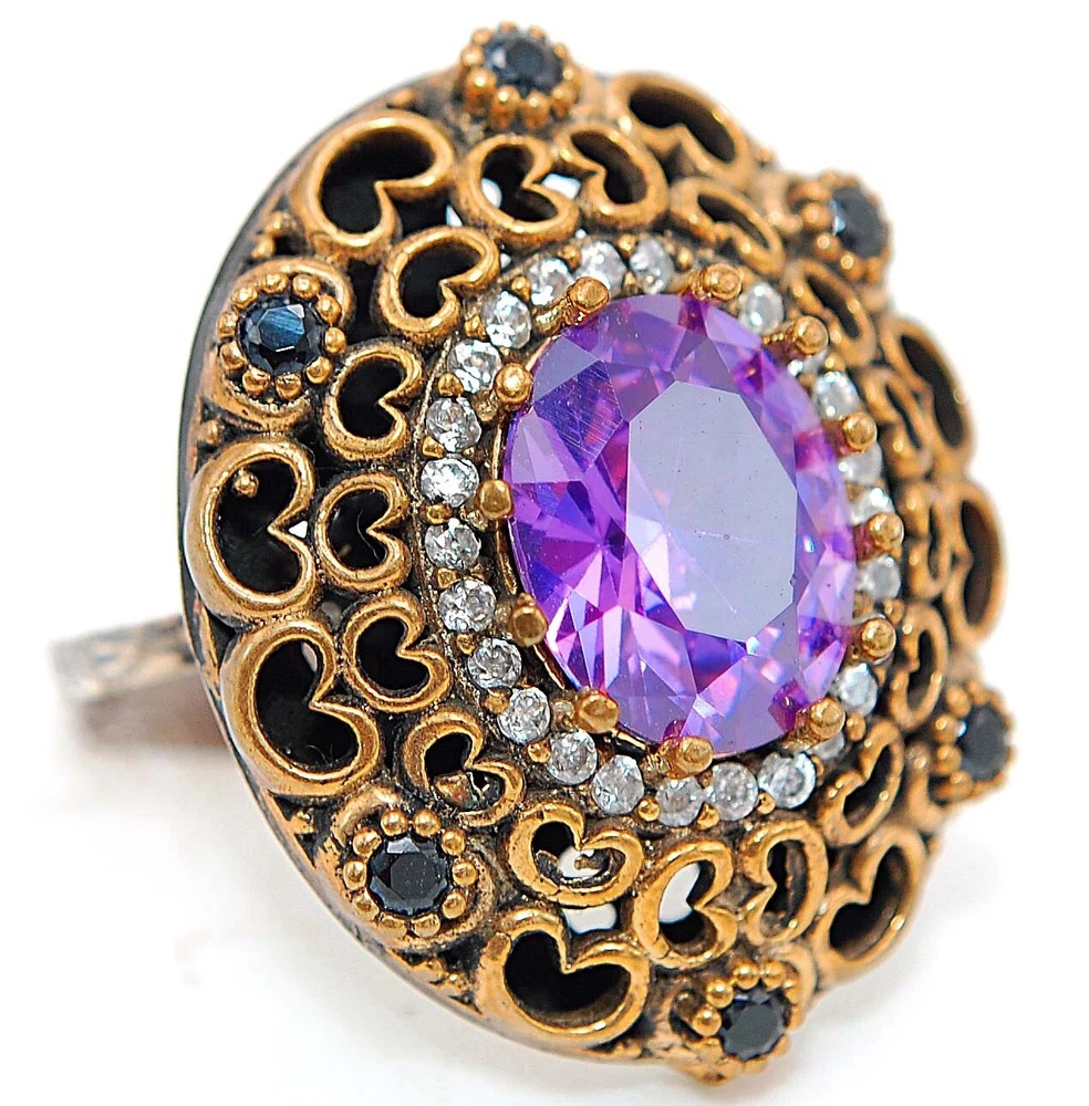 Ottoman Empire Style 4CT Amethyst & Topaz 925 Sterling Silver Ring Sz 8 H3-7