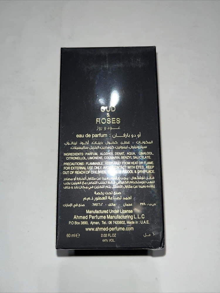 UPC:Does not applyBrand:Ahmed Al MaghribiScent:OudFeatures:All Natural Ingredients, Cruelty-Free/No Animal Testing, Long LastingFormulation:SprayMPN:MaghribiFragrance Name:Oud & RosesVolume:60mlSize Type:Regular SizeCountry/Region of Manufacture:United Arab EmiratesType:Eau de Parfumgtin13:Does not apply