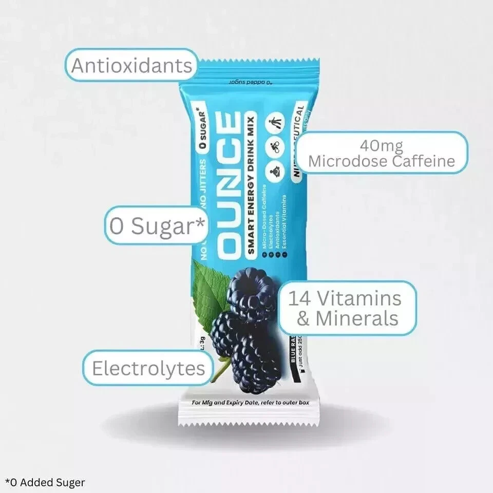 Ounce Energy Drink Powder + Electrolyte Powder - 20 Free Shipping World Wide About this item Healthy Energy Boost: Experience peak energy and focus without the crash or jitters. Ounce provides essential energy with B12 and a microdose of 40mg caffeine, making it ideal for those sensitive to caffeine or wanting to avoid jitters. It's functional energy crafted with premium ingredients. Convenient On-The-Go Solution: Enjoy the great taste and zero guilt with our tear-and-pour powder packs. Simply mix with 8-10 oz of water for an immediate, revitalizing, and delicious mental and physical energy charge. Unlike traditional energy drinks, our mix is sugar-free, making it a guilt-free choice. Compatible with keto, low-carb, paleo, gluten-free, and vegan diets. No soy, no dairy. Non-GMO. Electrolyte Replenishment: Each serving of our energy powder contains a balanced blend of Potassium, Sodium, Calcium, and Magnesium. With electrolytes and antioxidants, our energy drink mix supports proper hydration and muscle function. It's the perfect solution for athletes, travel days, busy families, students, or anyone in need of energizing hydration powder on the go. Essential Vitamin Infusion: Our energy drink powder packets are packed with B12 and multivitamin for men and women, providing a multi vitamin - rich hydration energy solution when added to water. These essential nutrients boost energy levels, support the immune system, and protect cells from damage. Get the vital nutrients your body needs for optimal performance. 100% Satisfaction: Your satisfaction is our top priority. If you're unhappy for any reason, please contact us directly, and we'll make it right. Reach out to us, and we'll take care of you. Safety Information: Not to exceed the recommended daily usage of 2 sachet per day. This Product is not intended to diagnose, treat, cure or prevent any disease. Pregnant or lactating wome or anyone with a medical condition consult with a physician before consuming this product. This product is not to be used as a substitute for a varied diet. Ingredients: Maltodextrin, Acidity Regulator, Inulin, Taurine, Anti-Caking Agent, Natural and Nature - Identical Flavour, Inositol, Potassium Chloride, Sweetener (INS 955), Green Tea Extract, Caffeine Anhydrous, Ginger Powder, Turmeric Powder, Grape Seed Extract, Vitamin C, Magnesium Oxide, Sodium Chloride, Calcium Carbonate, Niacin, Zinc Sulphate, Pantothenic Acid, Vitamin B6, Thiamine, Approved Food Grade Colour, Biotin, Chromium Chloride, Vitamin D and Vitamin B12 Directions: Simply mix with 8-10 oz of water for an immediate, revitalizing, and delicious mental and physical energy charge. Legal Disclaimer: Actual product packaging and materials may contain more and different information than what is shown on our app or website. We recommend that you do not rely solely on the information presented here and that you always read labels, warnings, and directions before using or consuming a product. Shipping All item will be shipped directly from MALAYSIA. Registered Post Item delivered will required signatures at the time of receiving. Dispatched items tracking number will be updated within 24 hrs. Of the dispatch. All items ordered will be dispatched within 48 hour after receiving the clear payment. All items require 15 to 30 business days to arrive at the given address. Please do not order if you are not willing to wait for above given time. All our items will be shipped worldwide, In any case the item is been stuck to the buyers custom department the buyer has to pay the custom charges for the receiving of the item. If you need express delivery we can arrange by DHL,Aramex,Fedex & UPS delivery time period 3-5 working days for more details please contact us through eBay message. *condition apply* SMS 395597042063 00122HAM