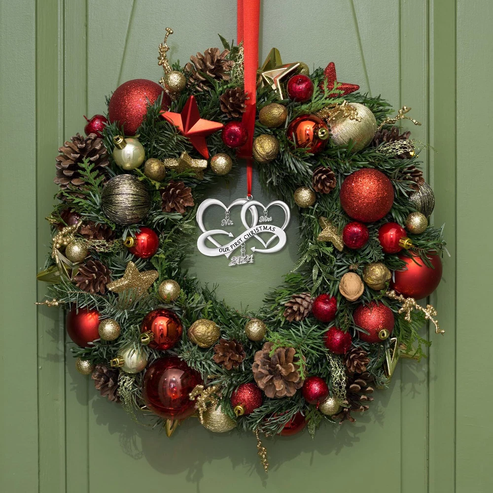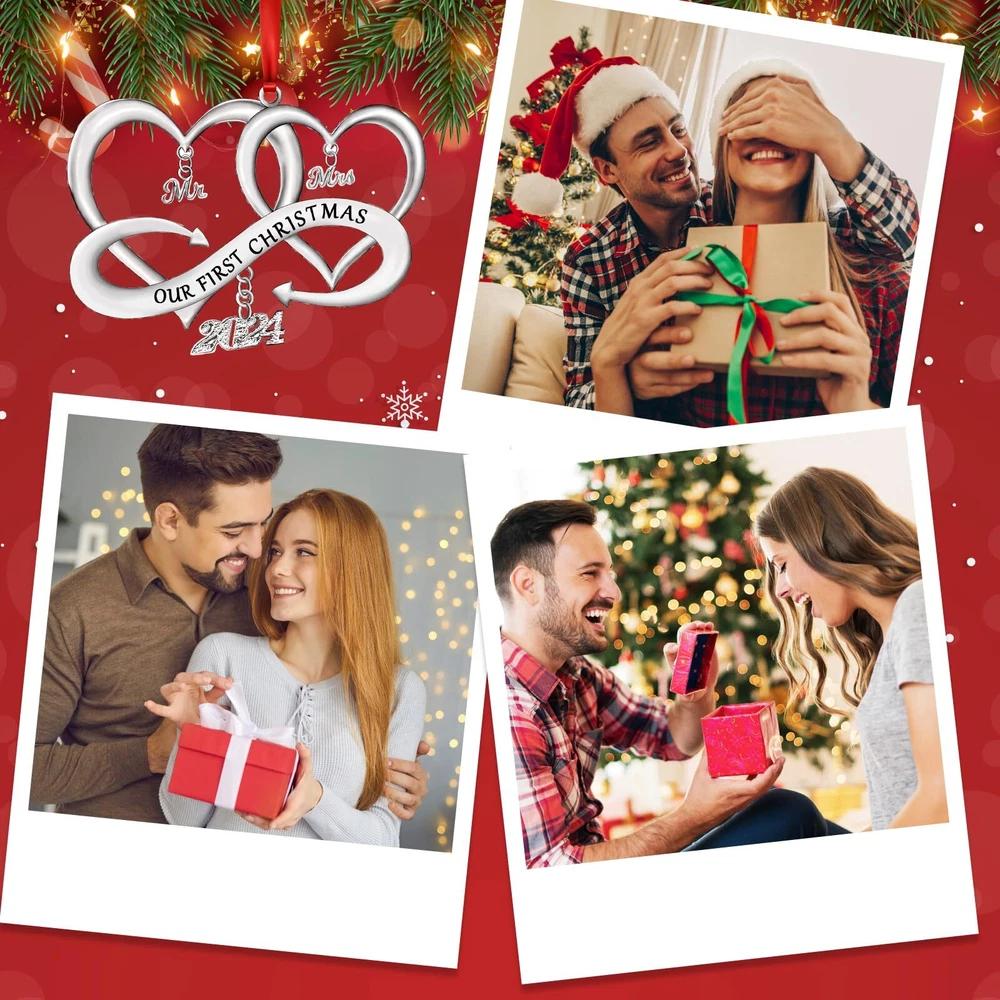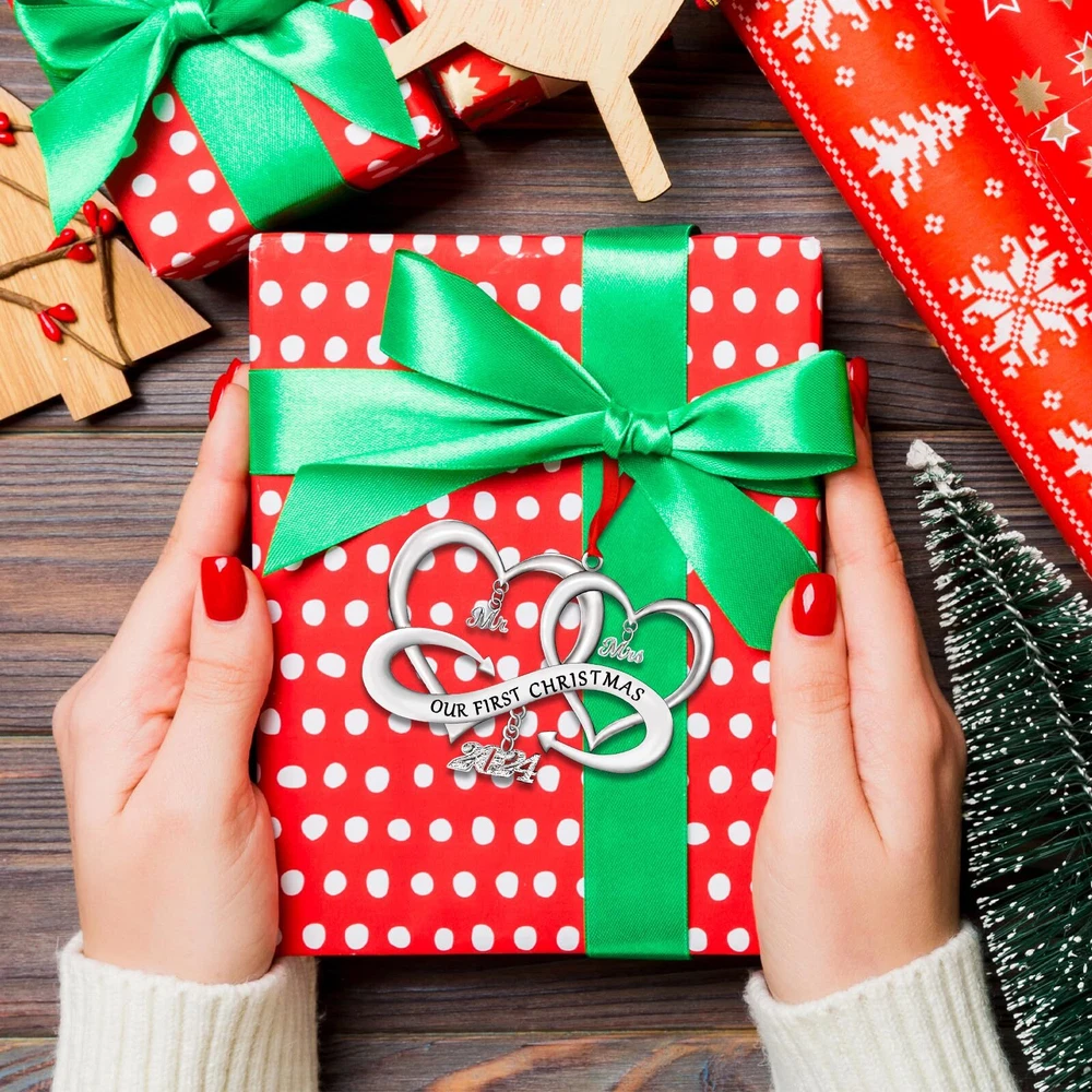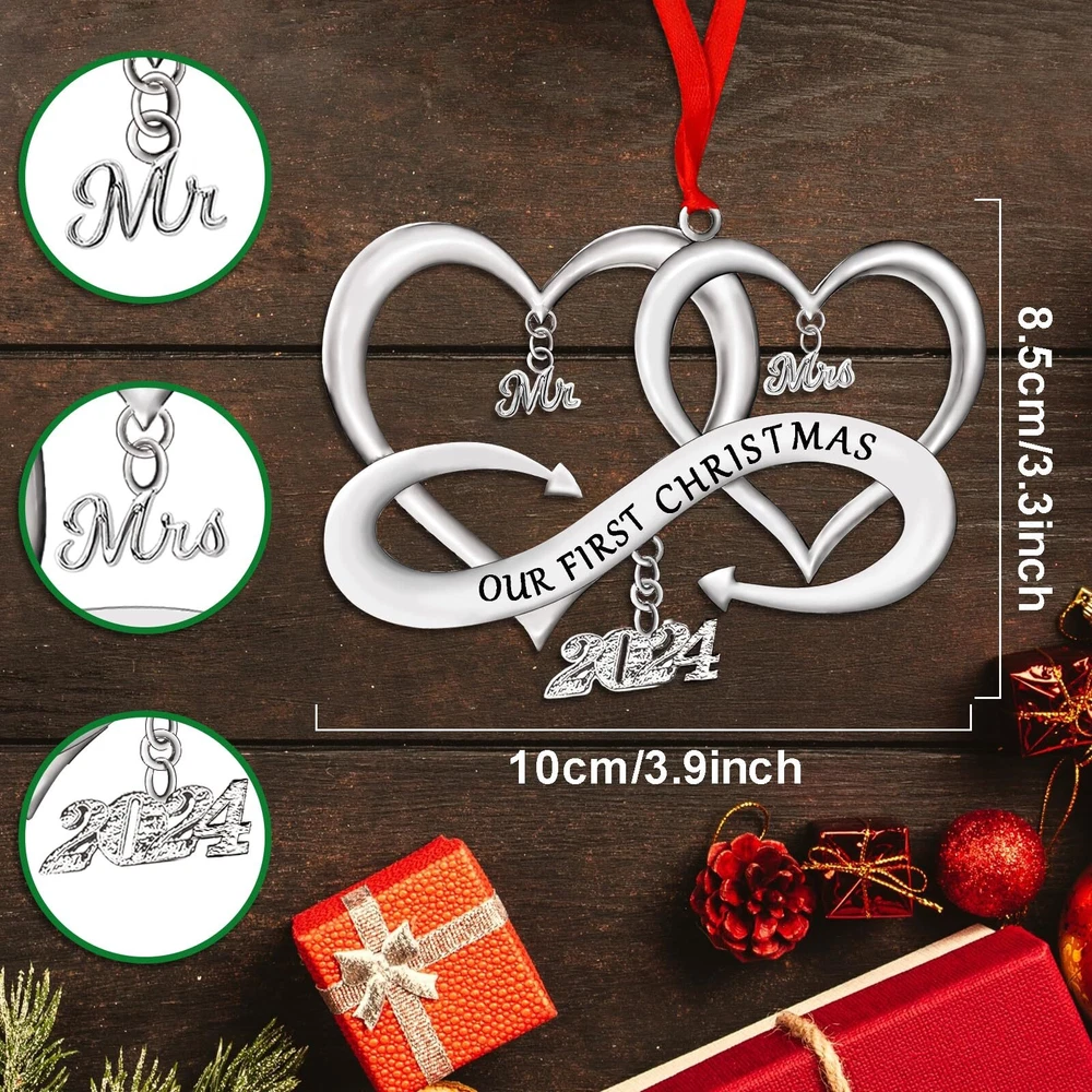 Our First Christmas As Mr & Mrs Ornament 2024 Size:4 inch x 2.5inch Material: high-quality metal Design: "Our First Christmas as Mr & Mrs 2024" Package Included: 1x red hanging cord, 1x heart ornament. Create a unique and thoughtful wedding gift for newlyweds A commemorative pattern specially designed for the first Christmas in 2024. Celebrate life's unforgettable moments. This year, add an extra special touch to your Christmas tree with our Mr & Mrs ornaments. As a souvenir metal ornament for Mr. and Mrs., The packaging is exquisite and beautiful, suitable for gifting to your loved ones. Ribbons make it easy to hang ornaments on your Christmas tree. Moreover, it is perfect for decorating wedding scenes, houses, and any romantic occasion. Ideal Anniversary Gift: Package includes 1 piece of exquisite metal ornament and 1 piece of red ribbon. Commemorating 2024, Our First Christmas as Mr & Mrs Ornament. Unique Christmas Decorations: bridal shower gifts, exquisite engagement gifts, housewarming gifts, Christmas country decorations, new home gifts for loved ones, family, friends, neighbors, and more. Long-term Preservation: transparent high-hardness metal, smooth edges, better gloss and texture. Shiny metal material, the pattern will not fade and can be stored for a long time. This beautiful ornament makes a great keepsake for newlyweds and is the perfect souvenir for your first Christmas wedding gift! Unique design: two hearts joined together, accompanied by the mathematical symbol of infinity below the hearts. It means endless love. This beautiful ornament makes a great keepsake for newlyweds and the perfect souvenir for your first Christmas wedding gift! Hanging Christmas Ornaments 2024: This metal Christmas heart hanging ornament includes a hanging red rope loop for easy hanging on your Christmas tree. Bright colors and unique design, perfect for hanging on your Christmas tree, window, fireplace, car, or anywhere you want.